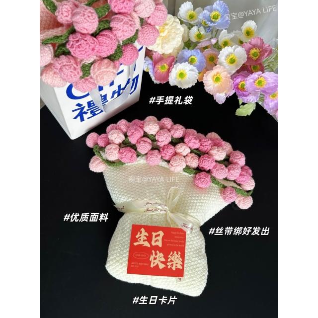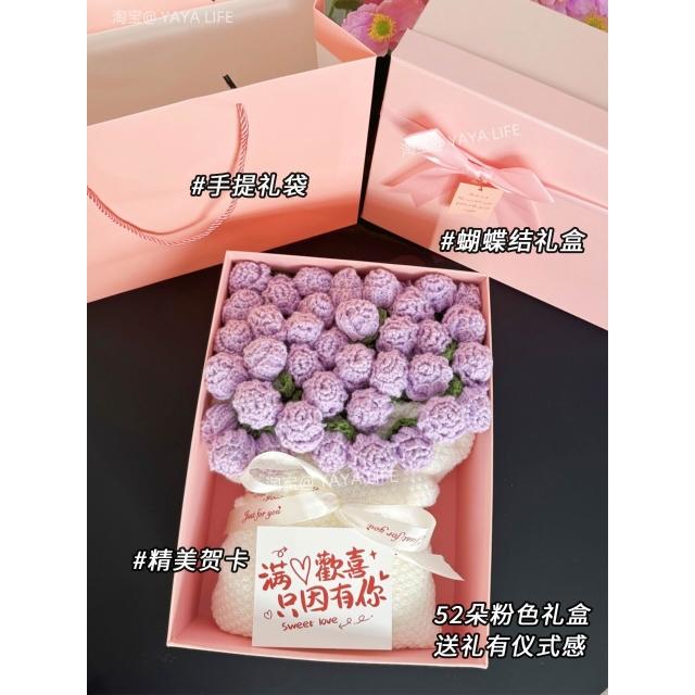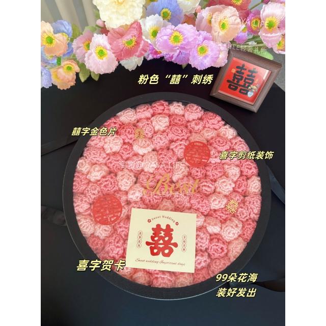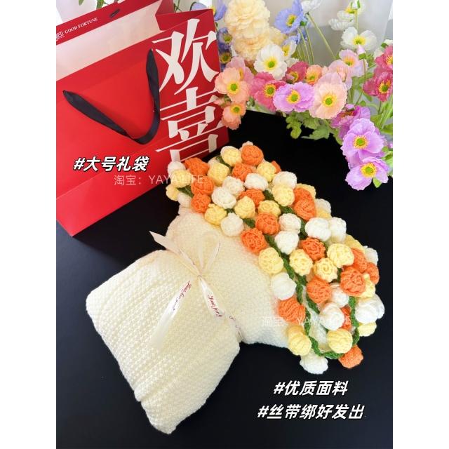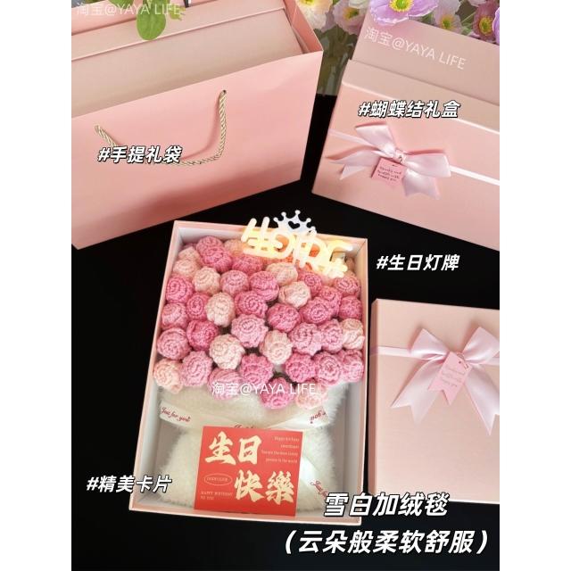 漸變玫瑰花束毛毯子成品手工編織鮮花朵披肩新婚閨蜜生日禮物女生