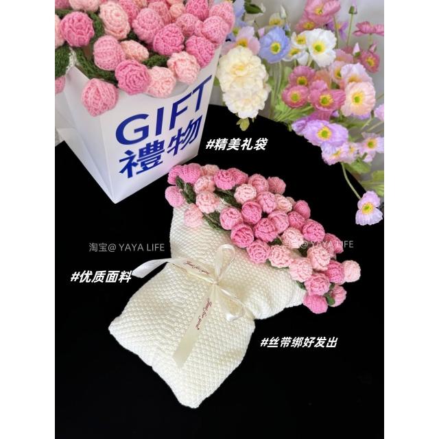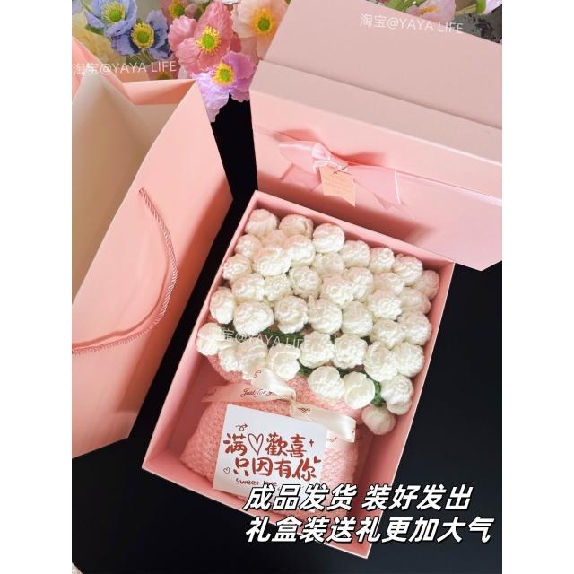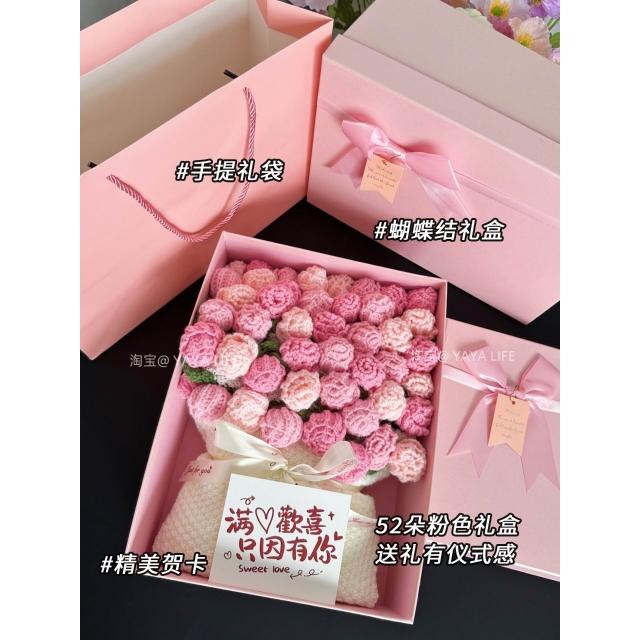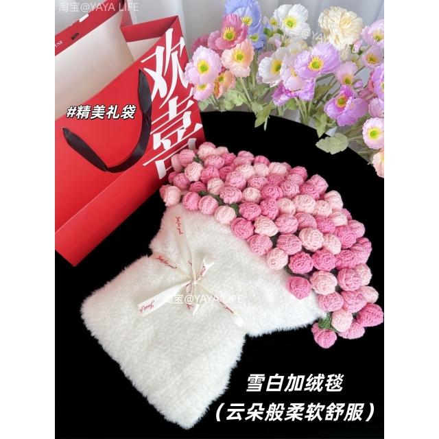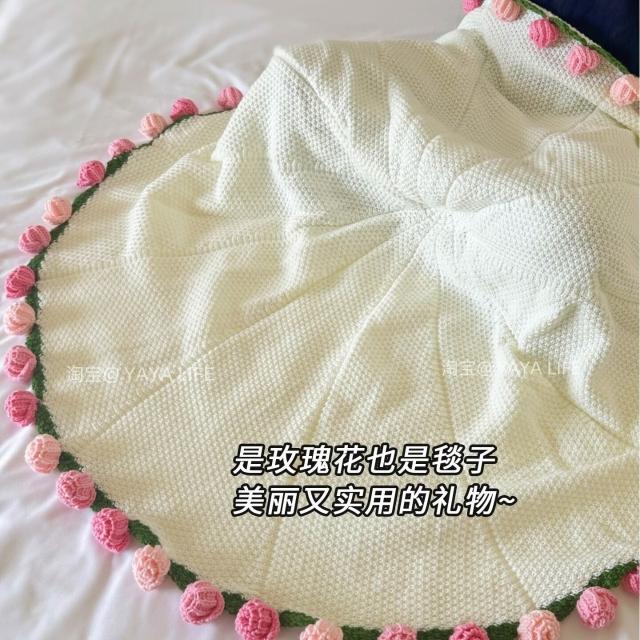 漸變玫瑰花束毛毯子成品手工編織鮮花朵披肩新婚閨蜜生日禮物女生