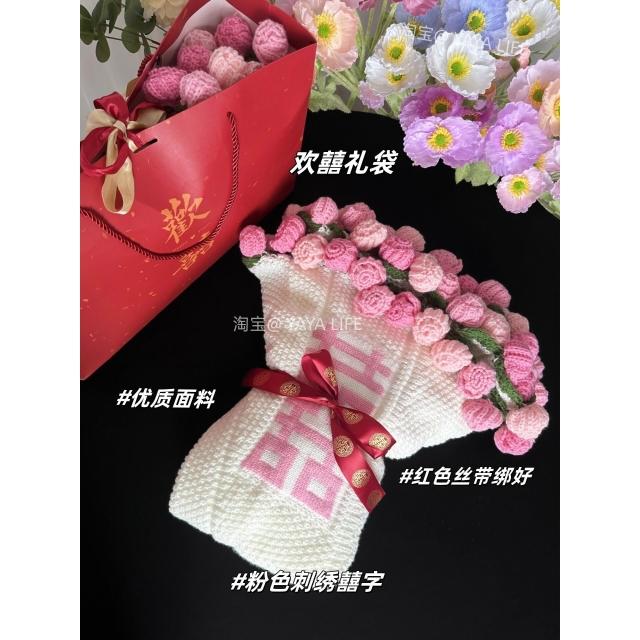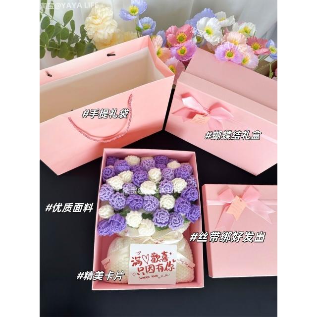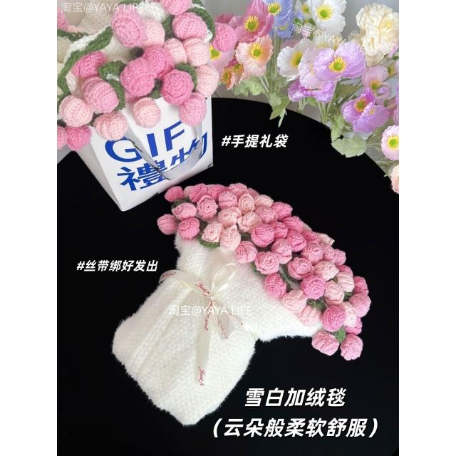 漸變玫瑰花束毛毯子成品手工編織鮮花朵披肩新婚閨蜜生日禮物女生
