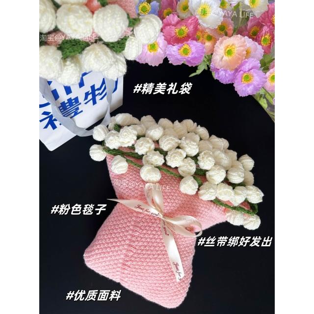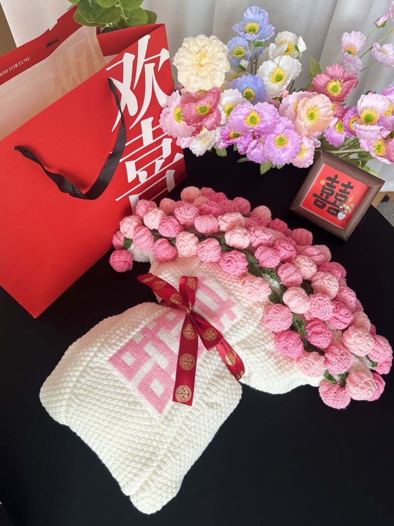 漸變玫瑰花束毛毯子成品手工編織鮮花朵披肩新婚閨蜜生日禮物女生