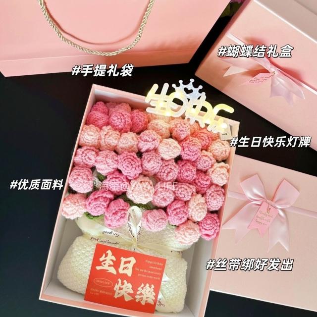 漸變玫瑰花束毛毯子成品手工編織鮮花朵披肩新婚閨蜜生日禮物女生