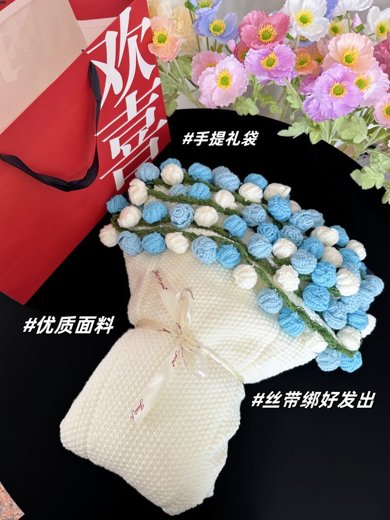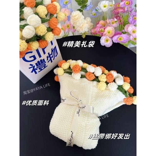 漸變玫瑰花束毛毯子成品手工編織鮮花朵披肩新婚閨蜜生日禮物女生