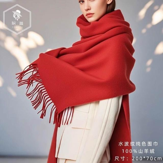 輕奢純山羊絨披肩女春秋2025新款水波紋蓋毯外搭夏季毛毯白色披風