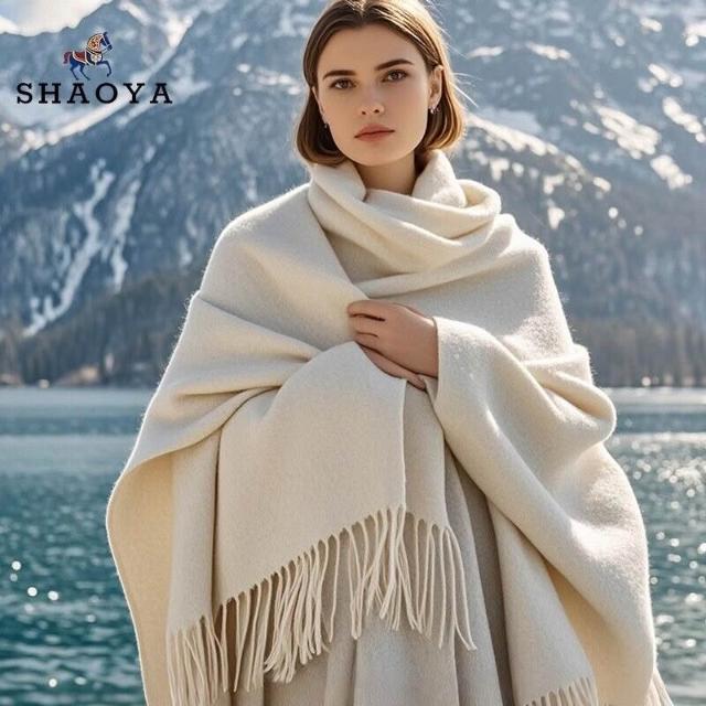 輕奢純山羊絨披肩女春秋2025新款水波紋蓋毯外搭夏季毛毯白色披風