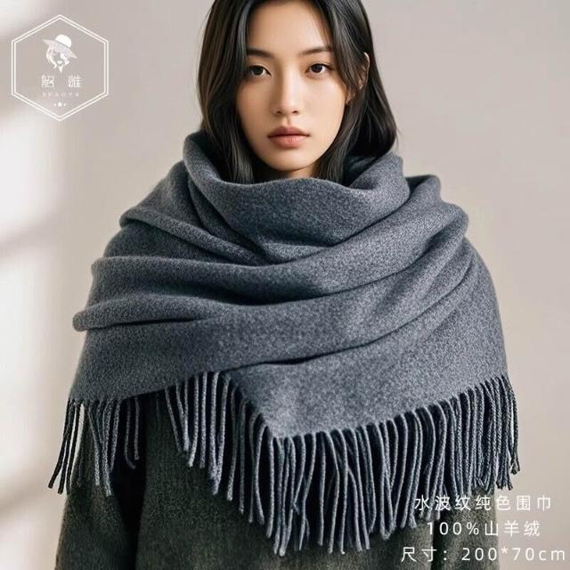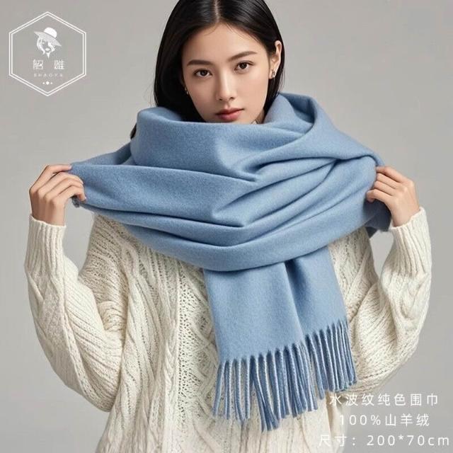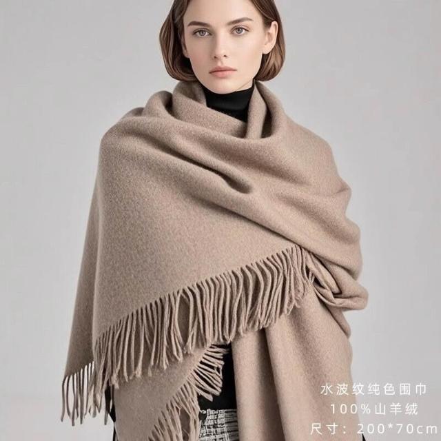 輕奢純山羊絨披肩女春秋2025新款水波紋蓋毯外搭夏季毛毯白色披風