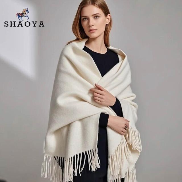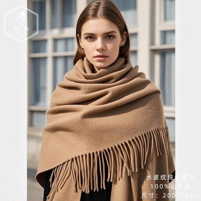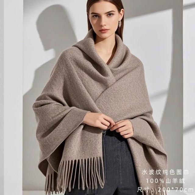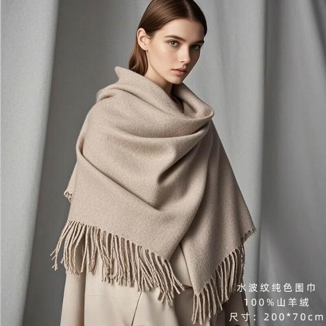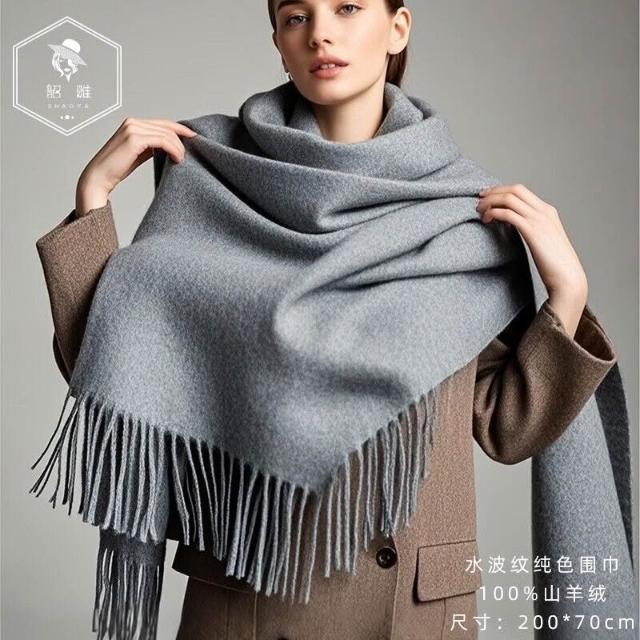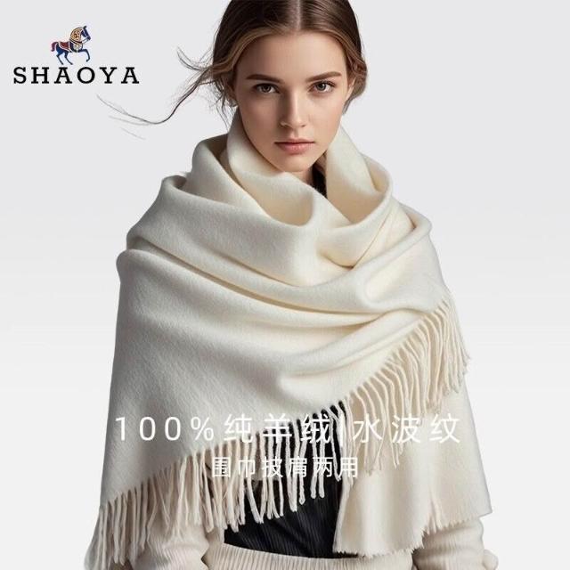 輕奢純山羊絨披肩女春秋2025新款水波紋蓋毯外搭夏季毛毯白色披風