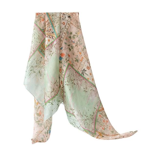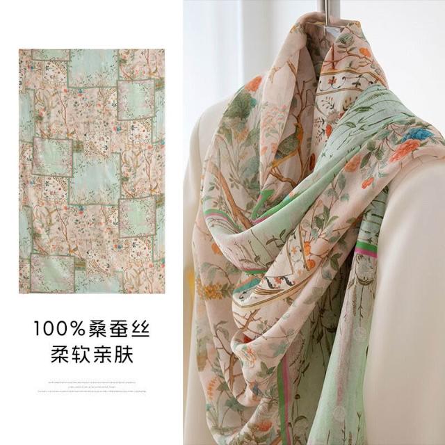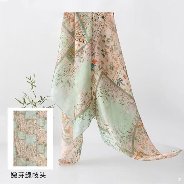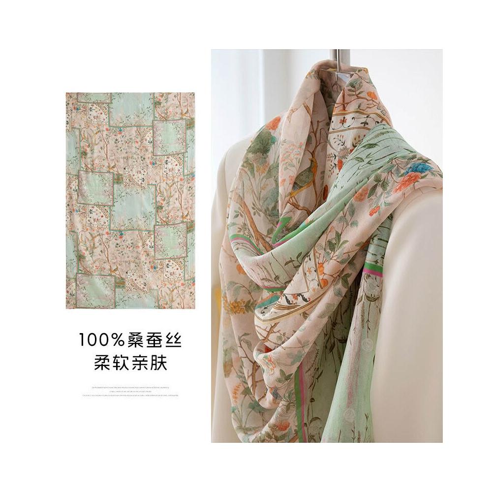 桑蠶絲絲巾女大長巾圍巾夏季薄款防曬紗巾披肩送長輩媽媽禮物