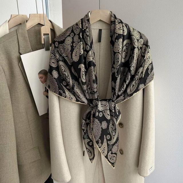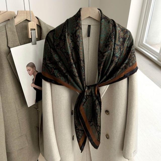 真絲印花大絲巾百搭春夏高級感文藝復古圍巾披肩桑蠶絲女士大方巾
