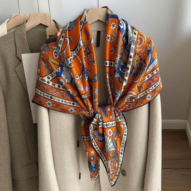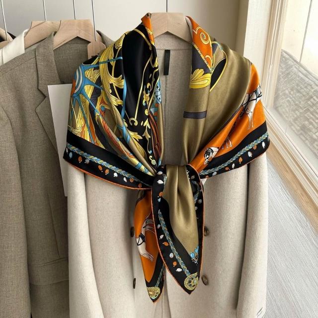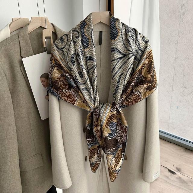 真絲印花大絲巾百搭春夏高級感文藝復古圍巾披肩桑蠶絲女士大方巾