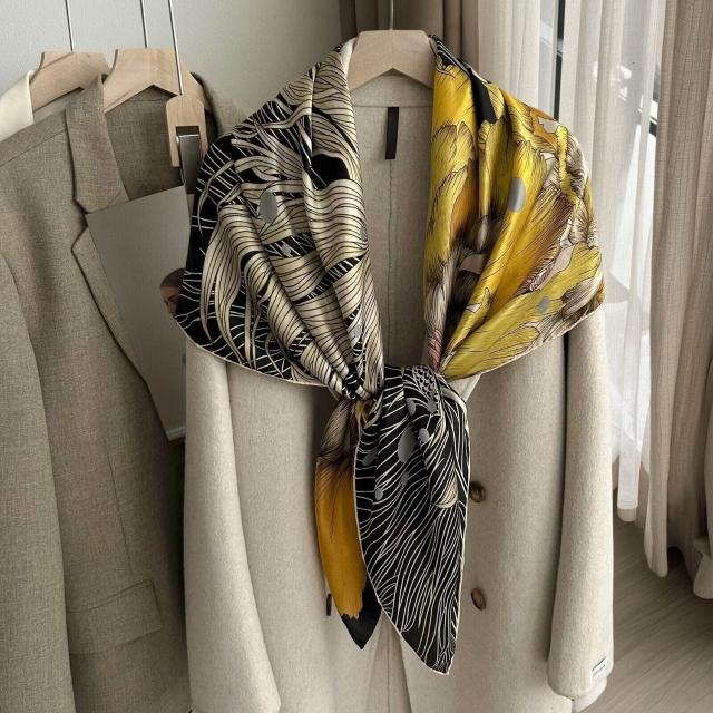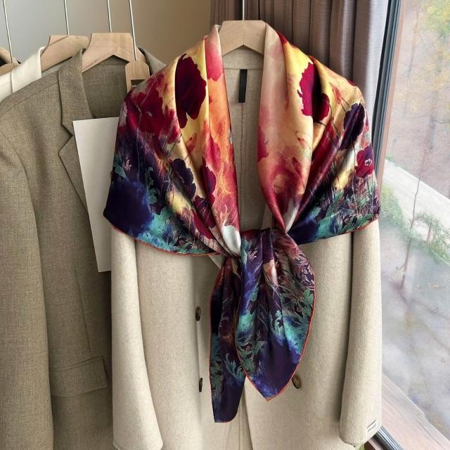真絲印花大絲巾百搭春夏高級感文藝復古圍巾披肩桑蠶絲女士大方巾