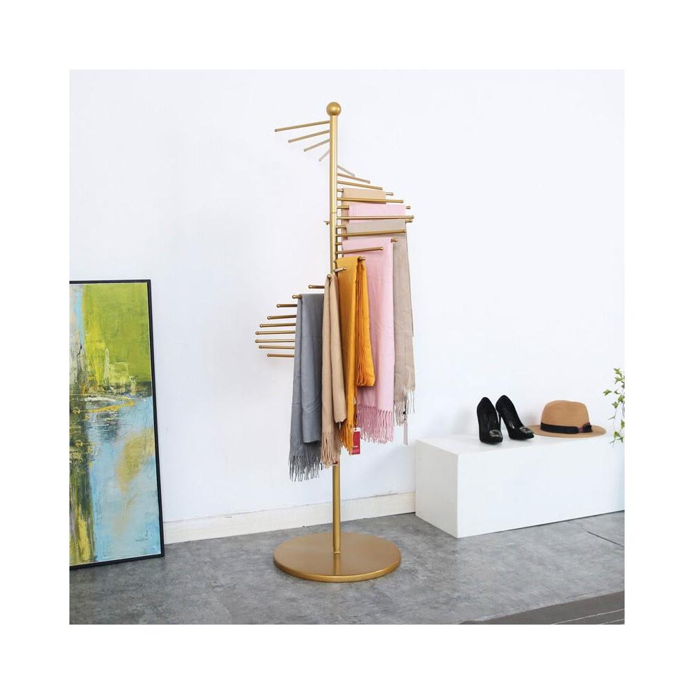落地旋轉圍巾展示架金色鐵藝圍巾架服裝店掛絲巾展示架創意衣帽架