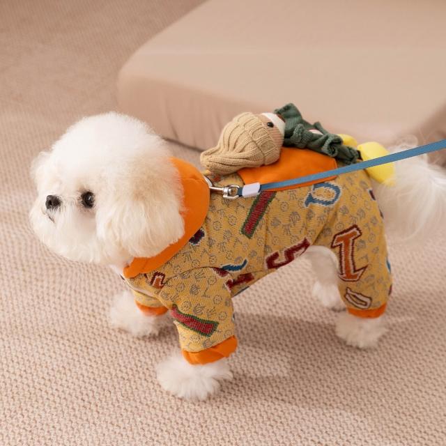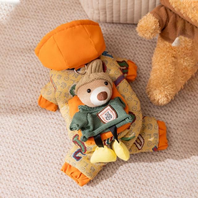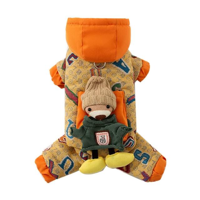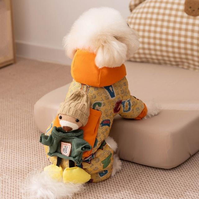 狗狗衣服冬季加厚保暖四腳衣塗鴉潮酷小熊連帽小型犬棉衣寵物服裝