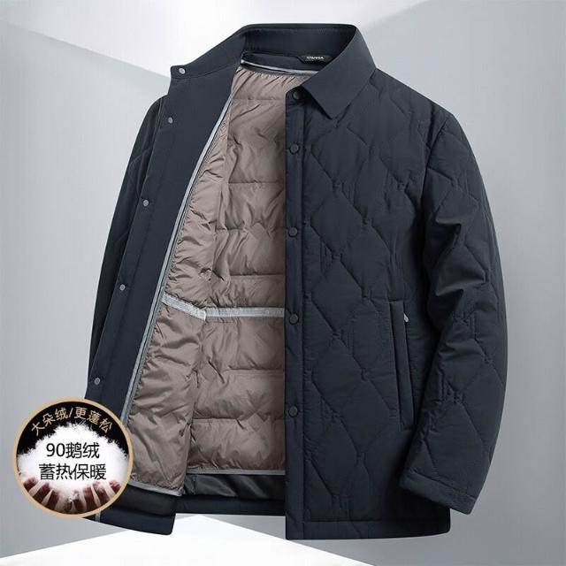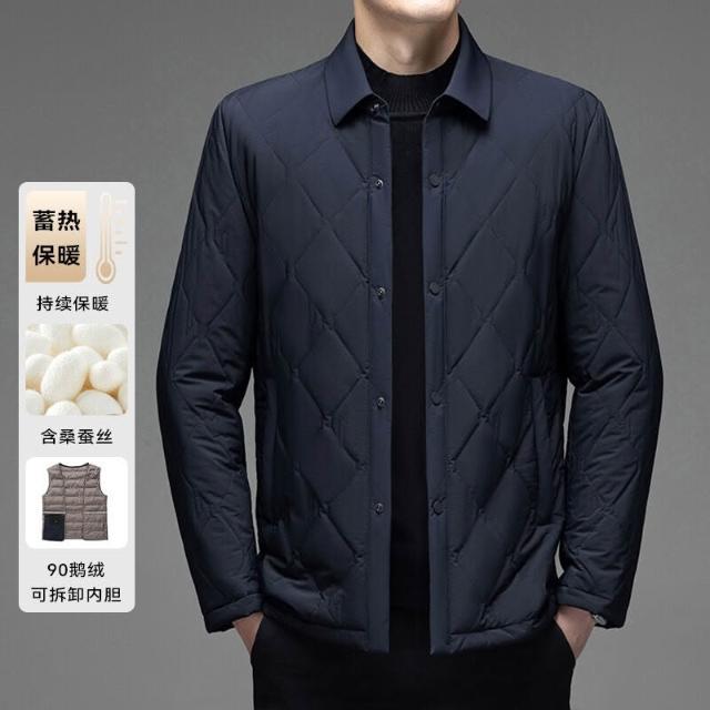 男士翻領鵝絨服2025冬季新款男裝中年休閑脫卸鵝絨馬甲爸爸裝外套