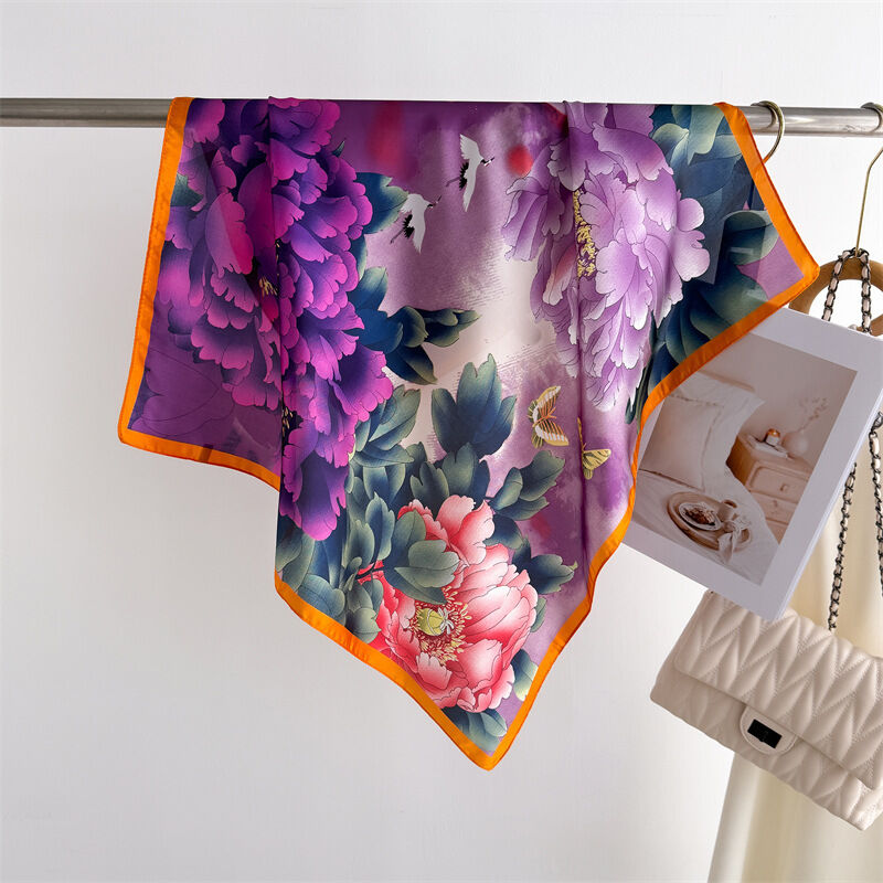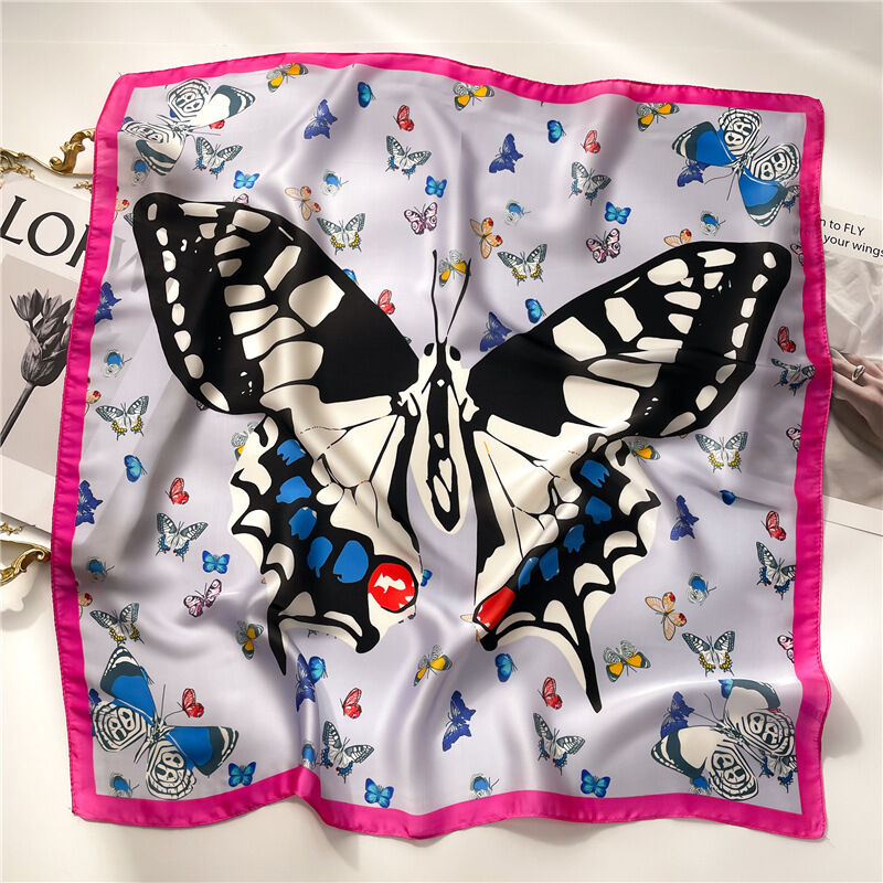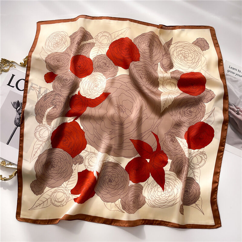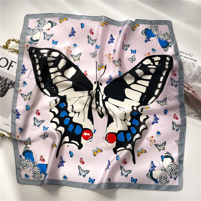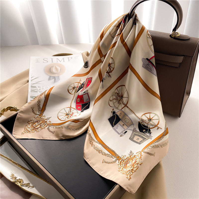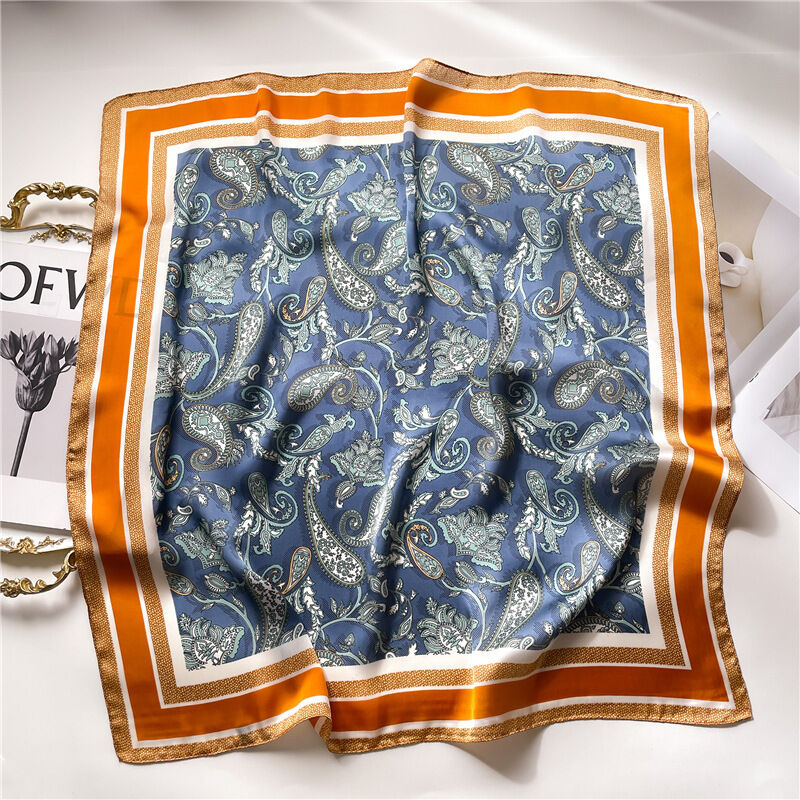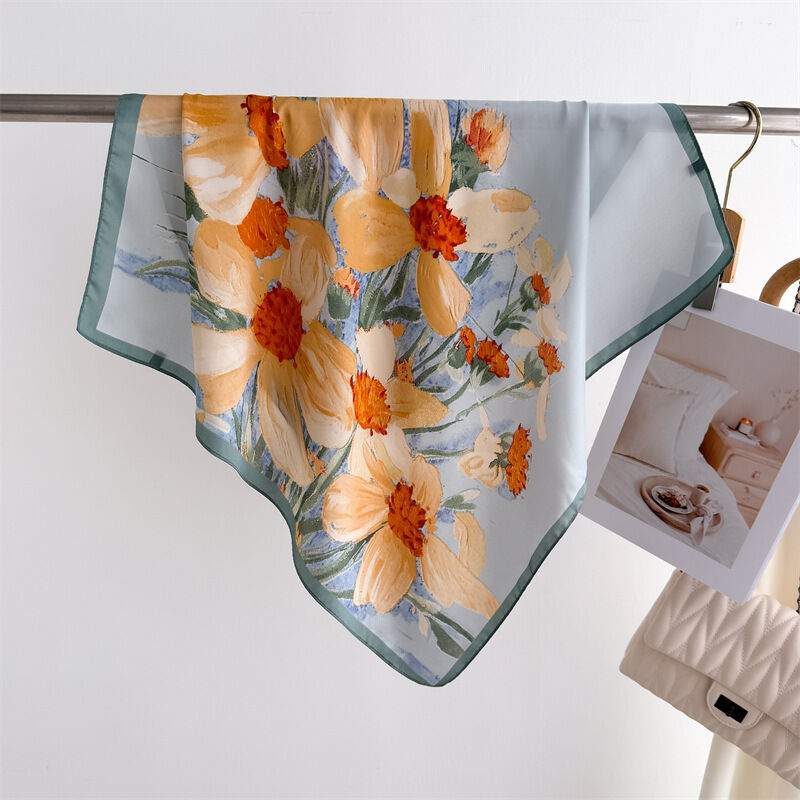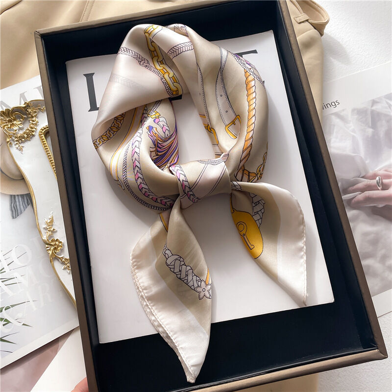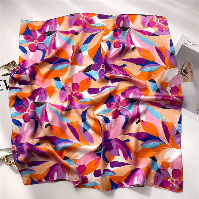 廠家批發絲巾女士圍巾披肩70cm韓國小方巾綢緞面印花春夏防嗮頭巾