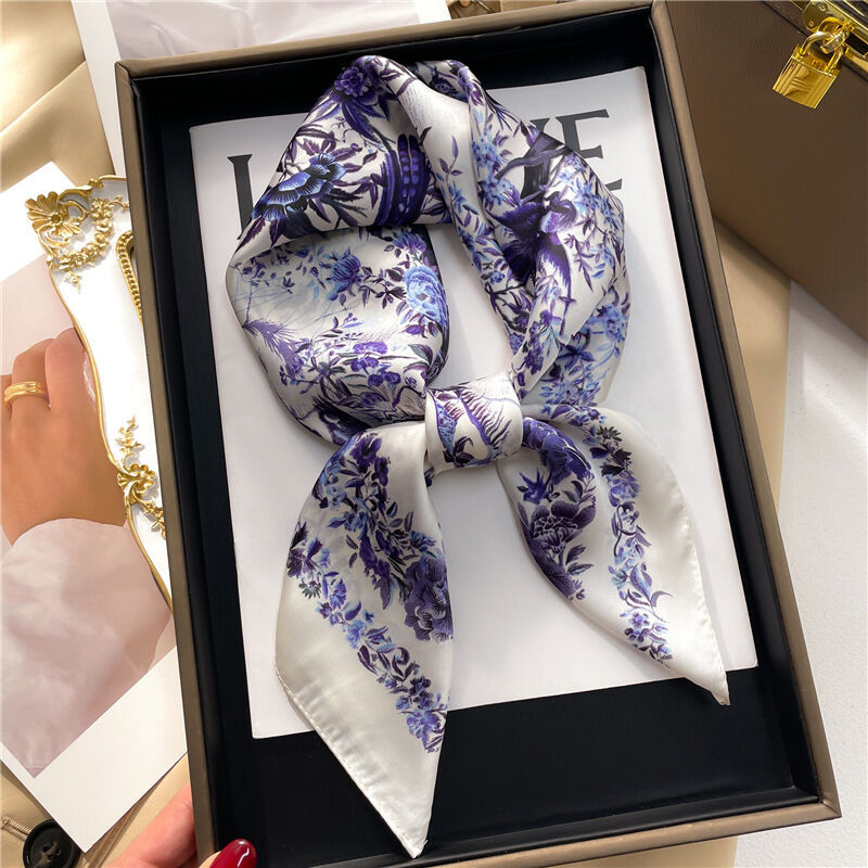 廠家批發絲巾女士圍巾披肩70cm韓國小方巾綢緞面印花春夏防嗮頭巾