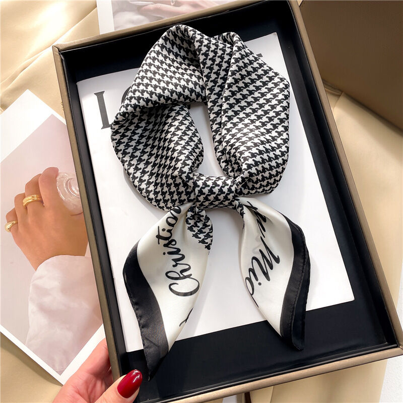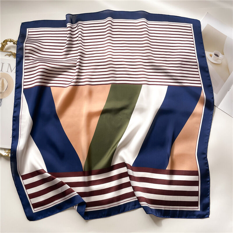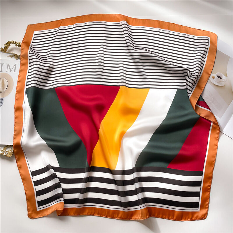 廠家批發絲巾女士圍巾披肩70cm韓國小方巾綢緞面印花春夏防嗮頭巾