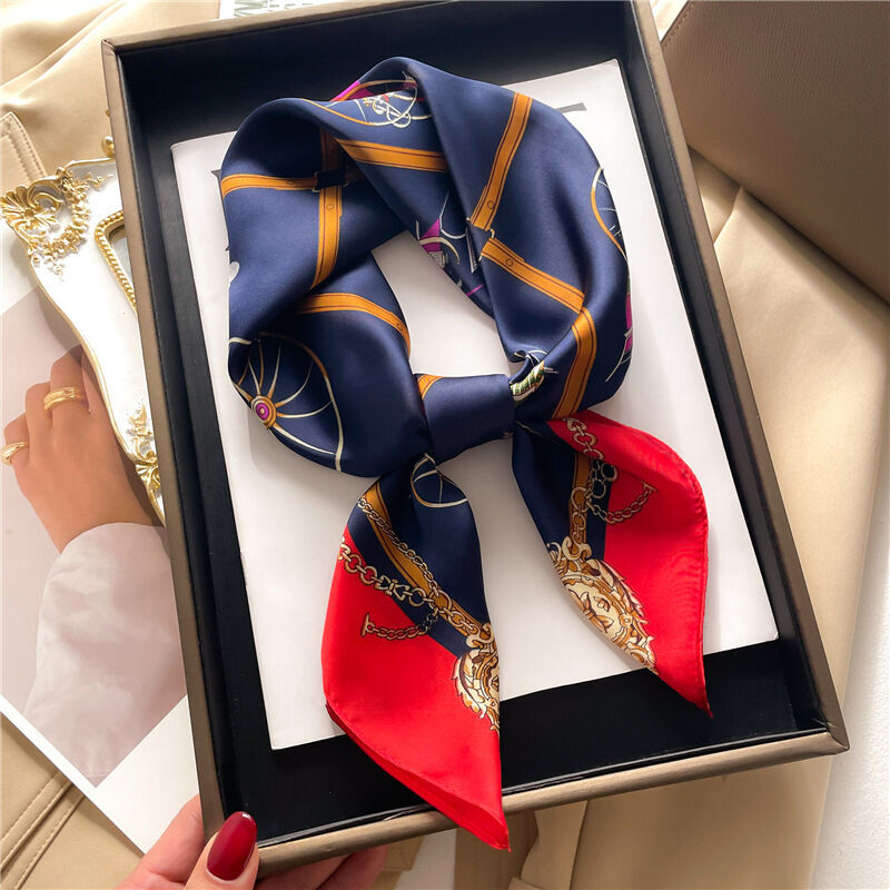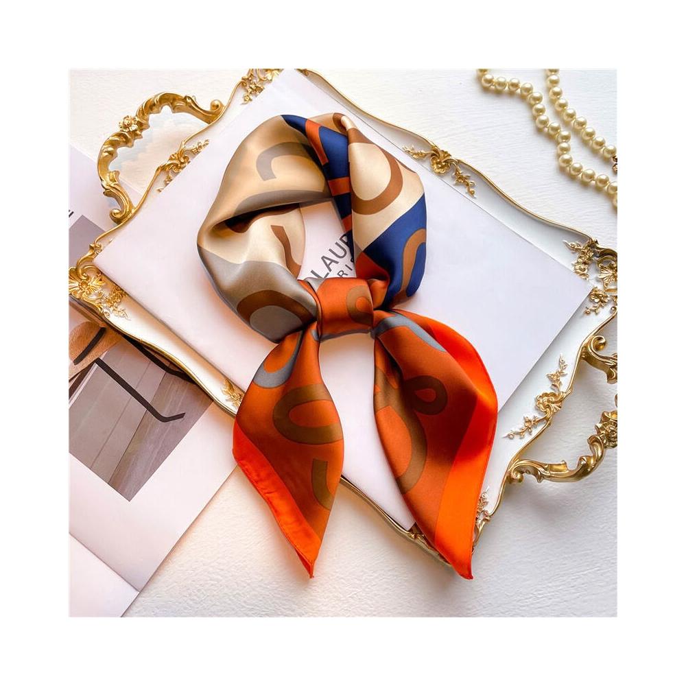 廠家批發絲巾女士圍巾披肩70cm韓國小方巾綢緞面印花春夏防嗮頭巾