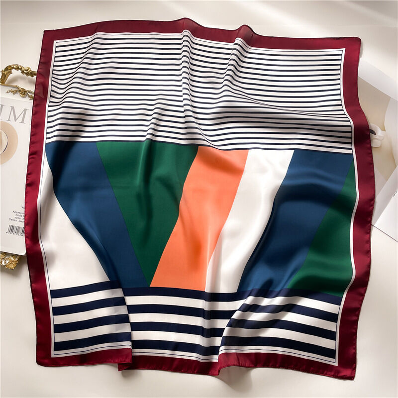 廠家批發絲巾女士圍巾披肩70cm韓國小方巾綢緞面印花春夏防嗮頭巾