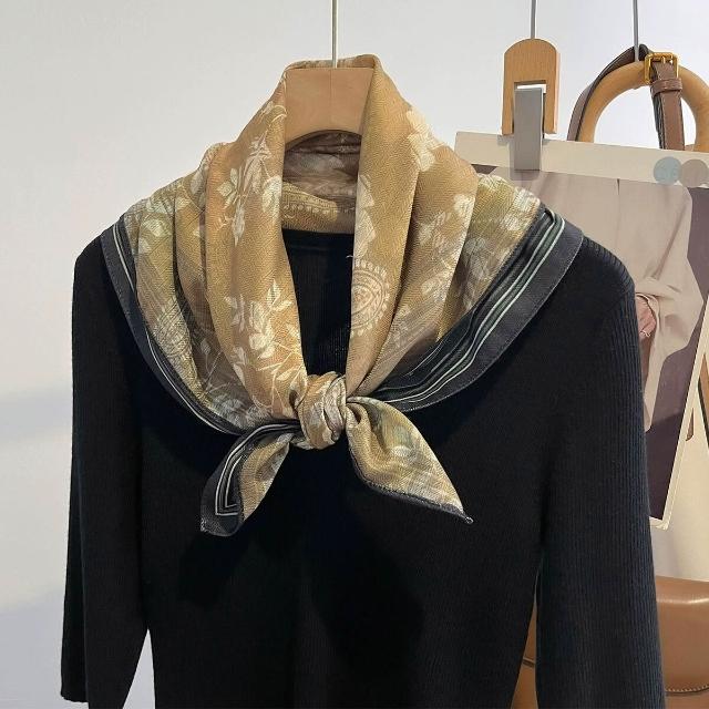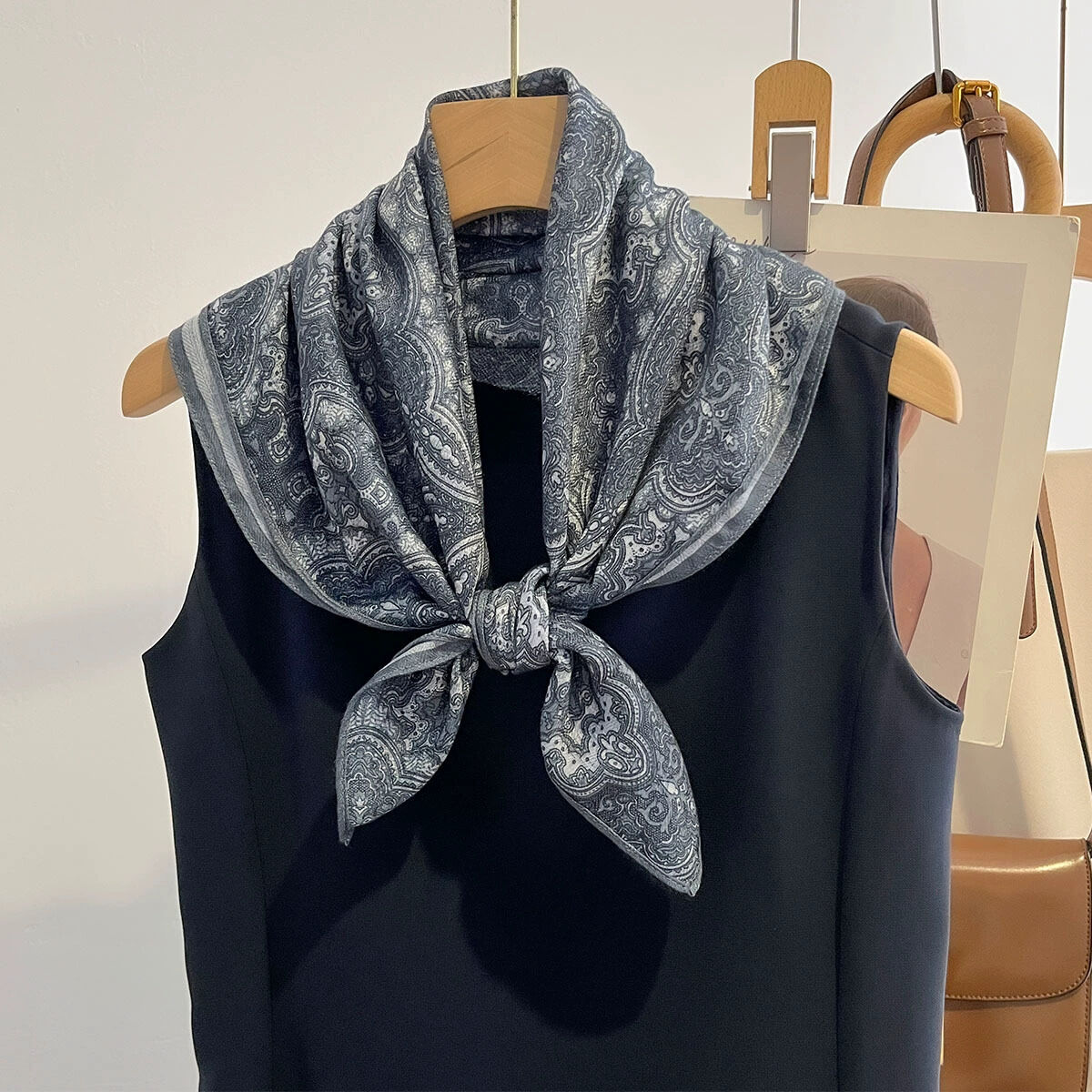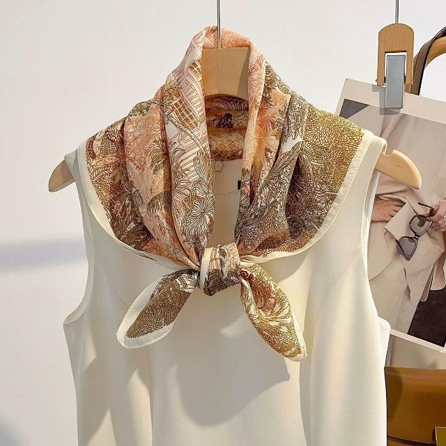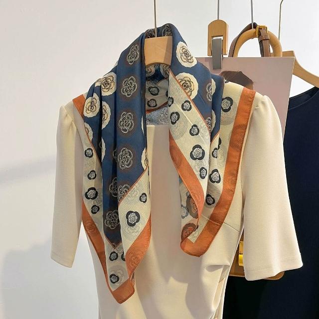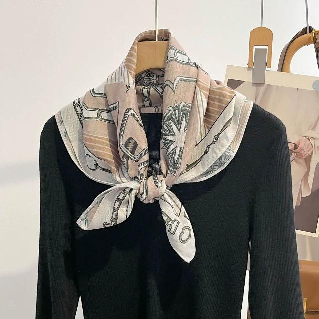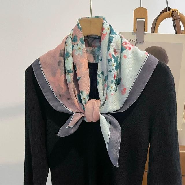 文藝小清新碎花氣質小方巾圍巾高級感裝飾絲巾時尚領巾防曬披肩女