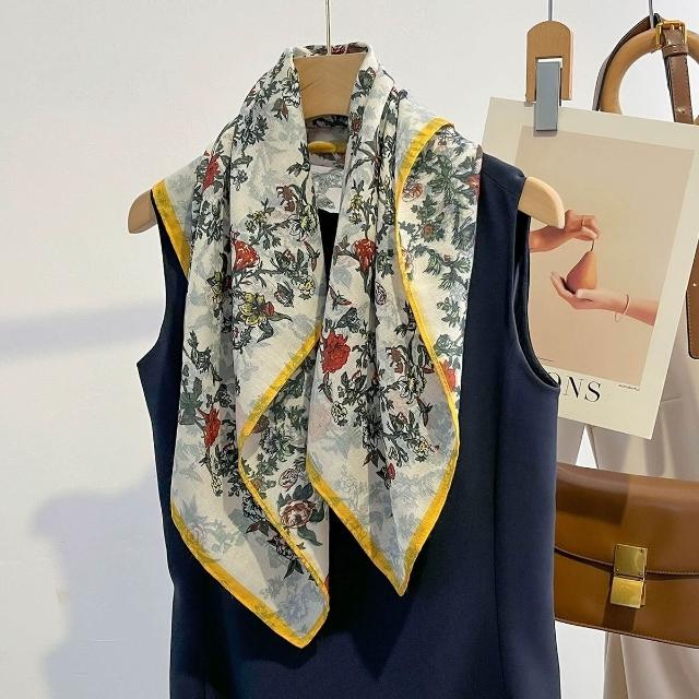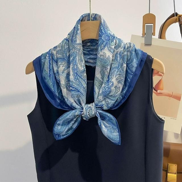 文藝小清新碎花氣質小方巾圍巾高級感裝飾絲巾時尚領巾防曬披肩女