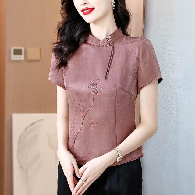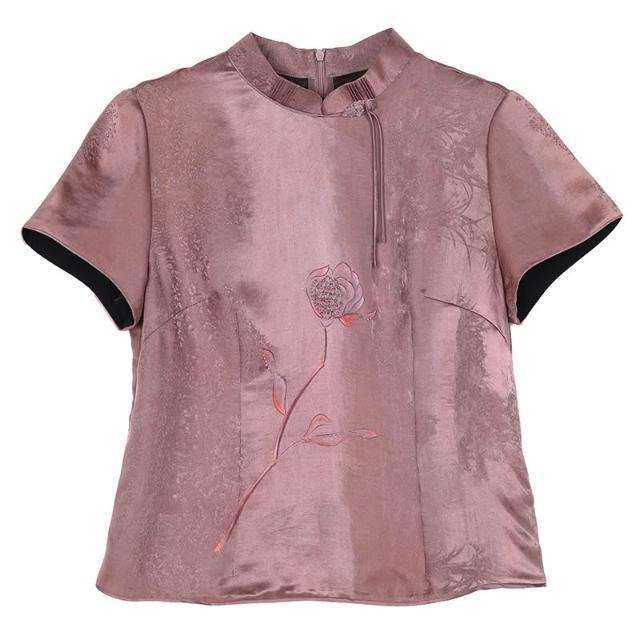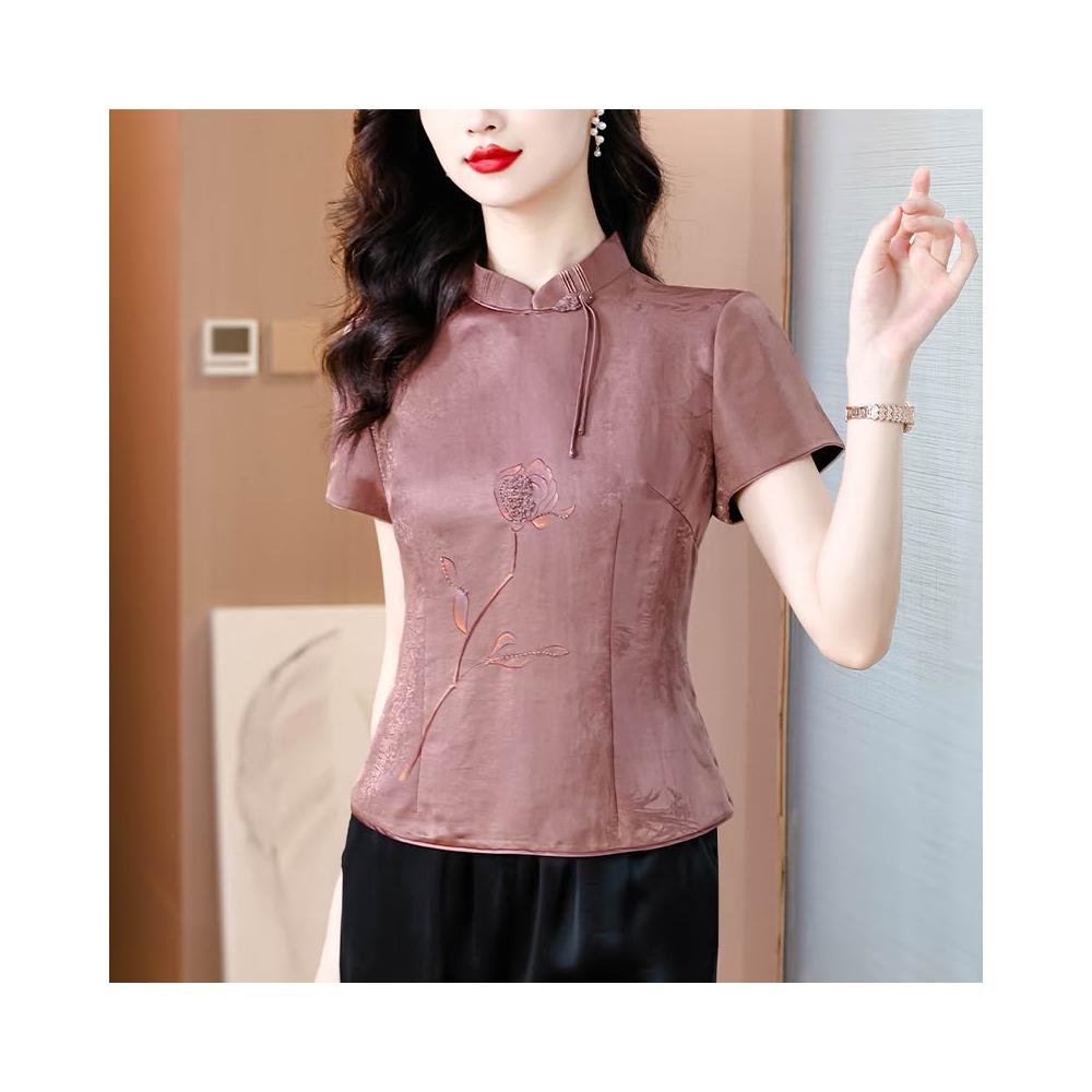 新品 上衣 短袖 香雲紗真絲短袖T恤上衣女年輕款夏季媽媽桑蠶絲中式小衫 居之雅