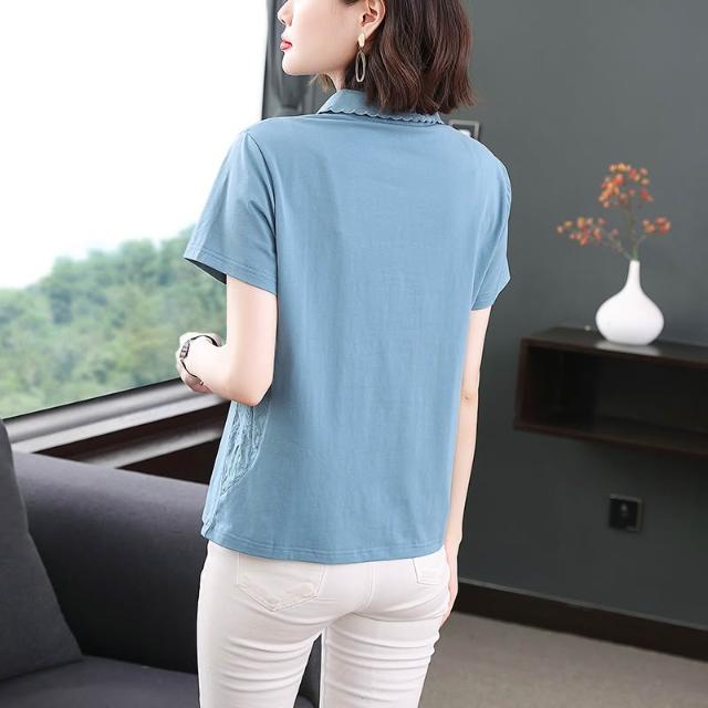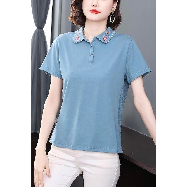 新品 上衣 短袖 polo衫短袖夏季t恤女2024新款正肩大碼寬松遮肉媽媽裝ins小衫上衣 居之雅
