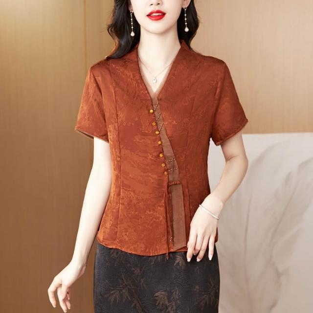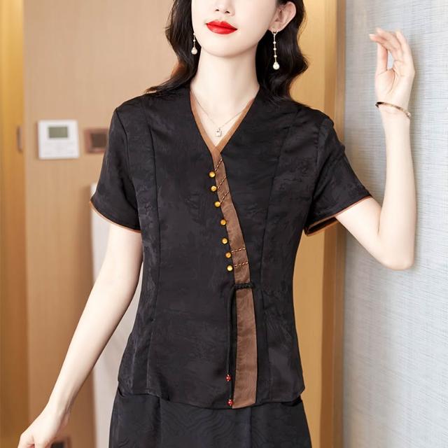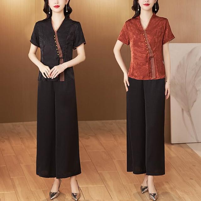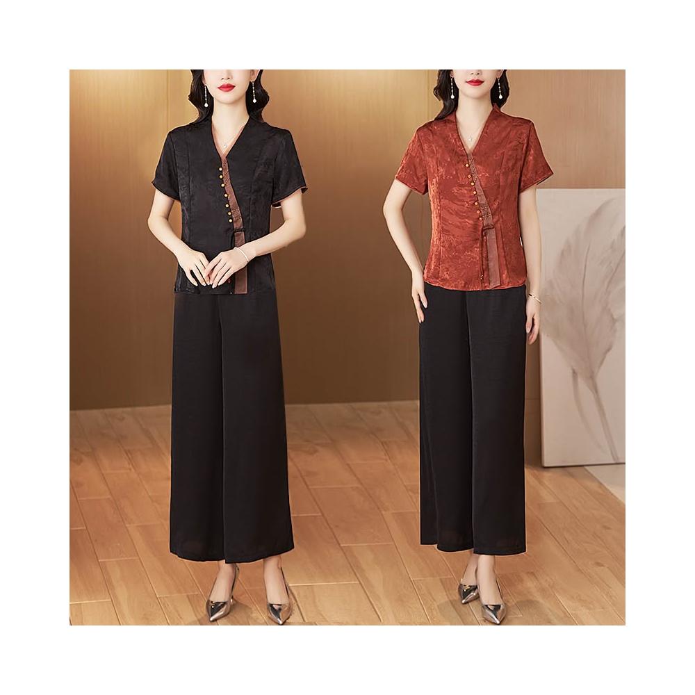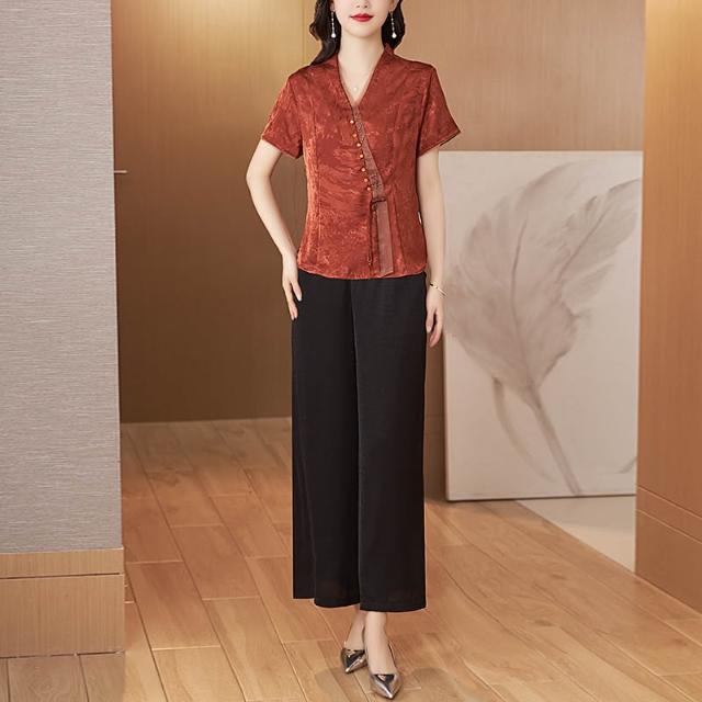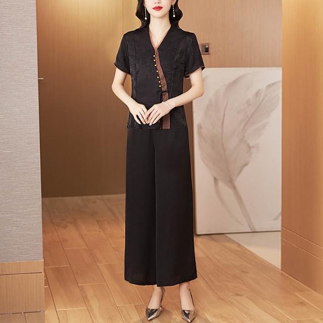 運動套裝 休閒套裝 優雅套裝 實拍 2024媽媽裝兩件套上衣+褲子新中式旗袍領國風洋氣夏季套裝 居之雅