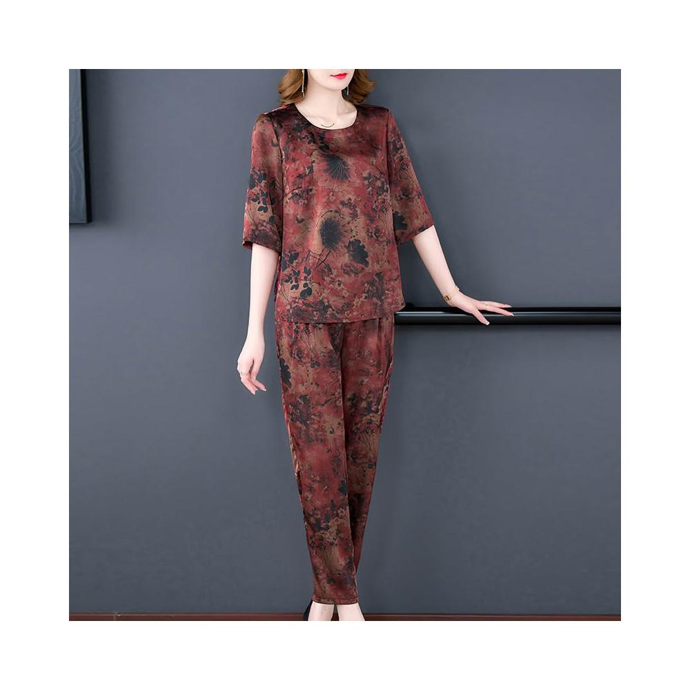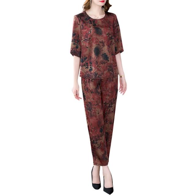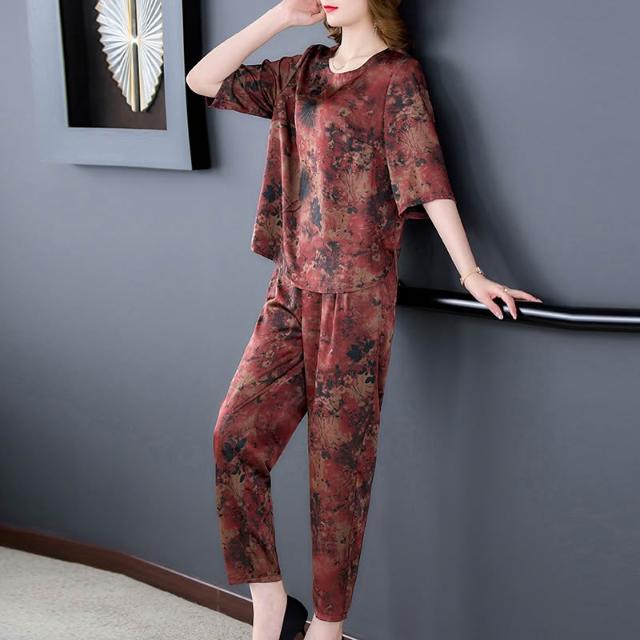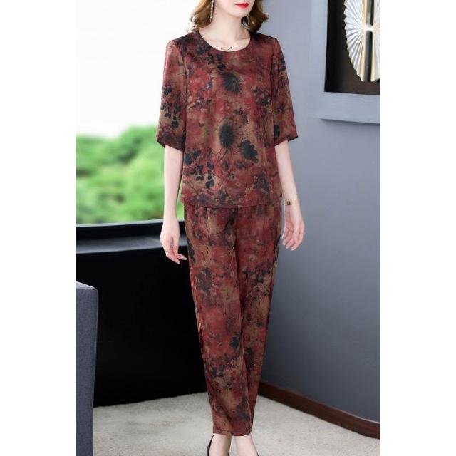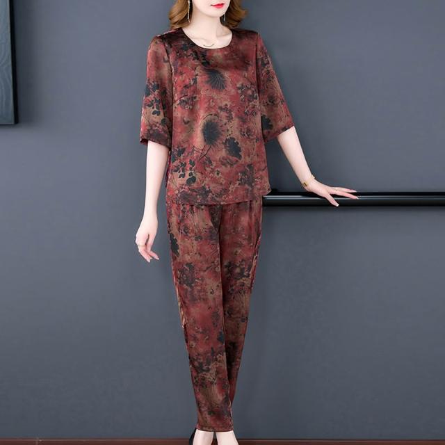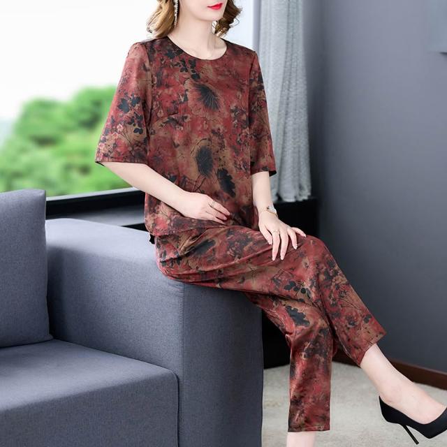 運動套裝 休閒套裝 優雅套裝 媽媽夏季運動兩件套裝休閑洋氣母親節碎花高貴中老年女闊太太短袖 居之雅