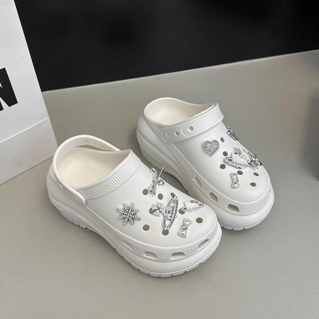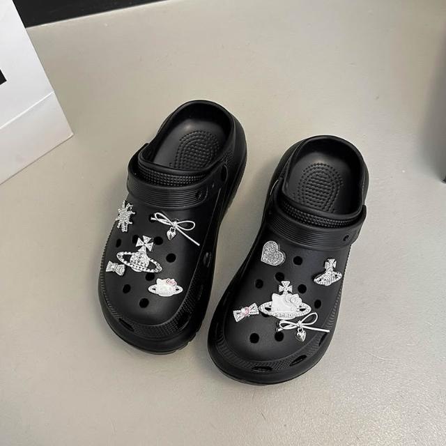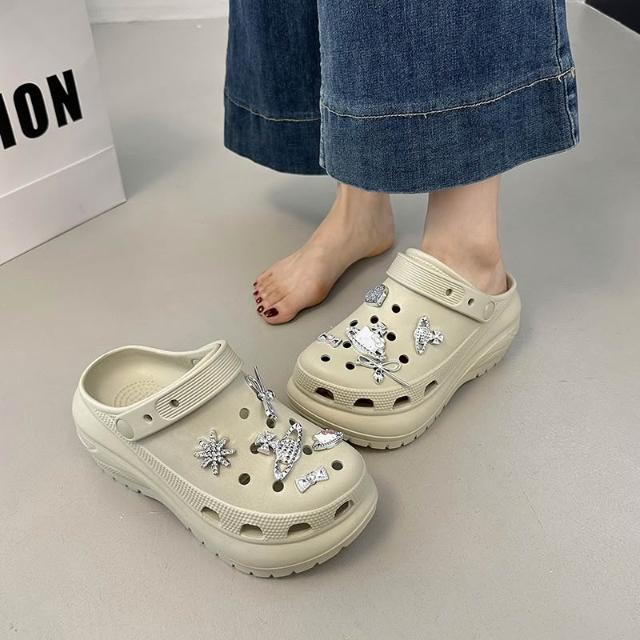 新款 拖鞋 洞洞鞋 爆款配飾光輪洞洞鞋2025新款夏季休閑厚底增高EVA外穿防滑女百搭 居之雅
