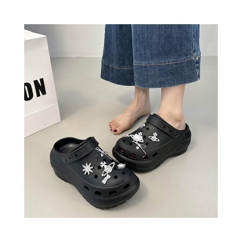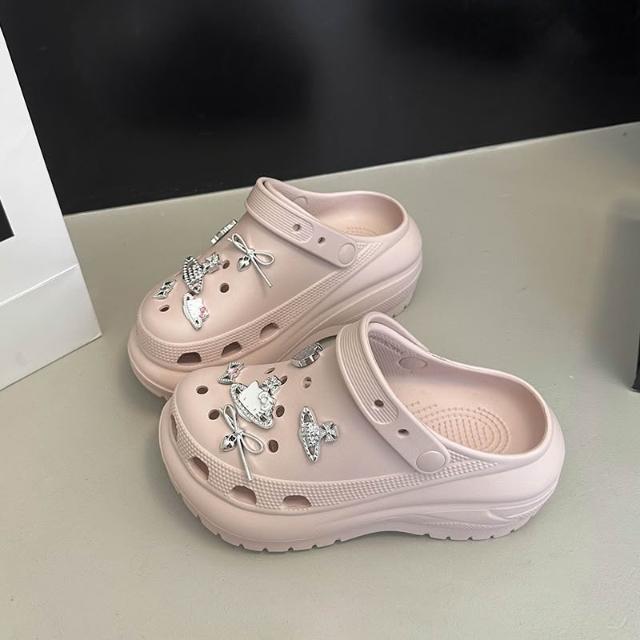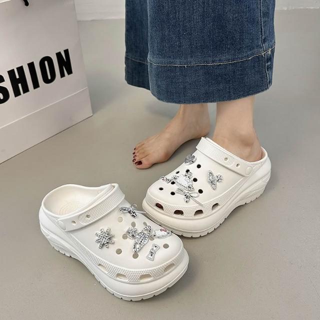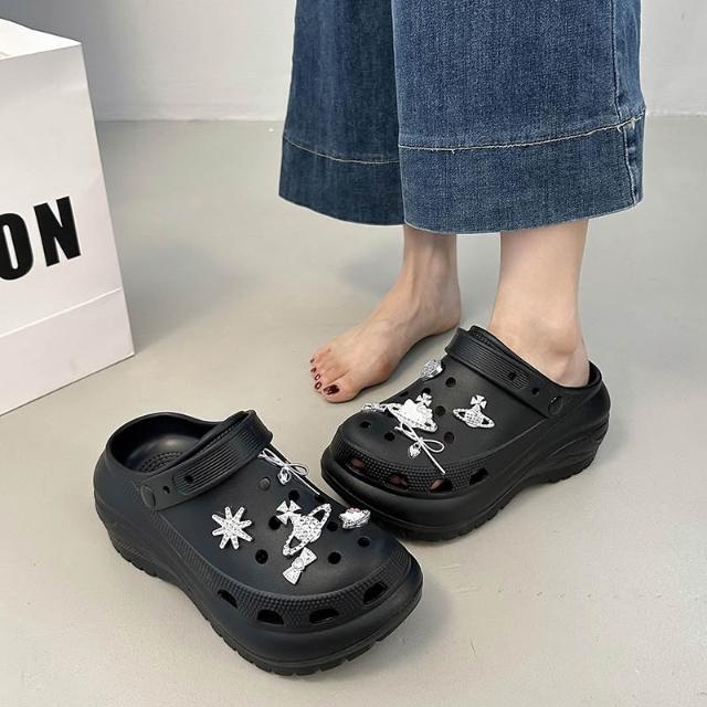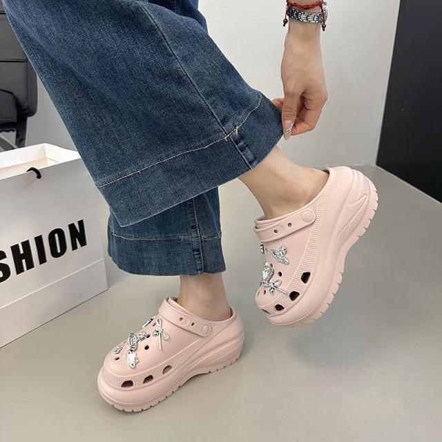 新款 拖鞋 洞洞鞋 爆款配飾光輪洞洞鞋2025新款夏季休閑厚底增高EVA外穿防滑女百搭 居之雅