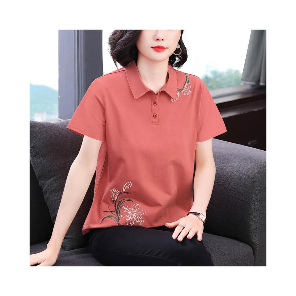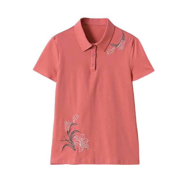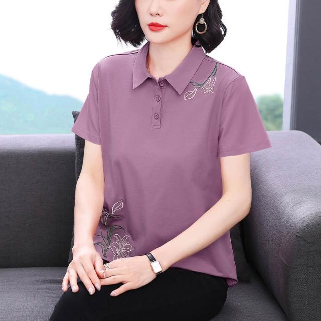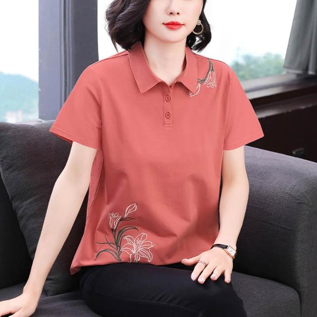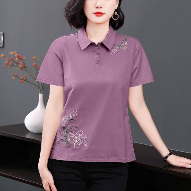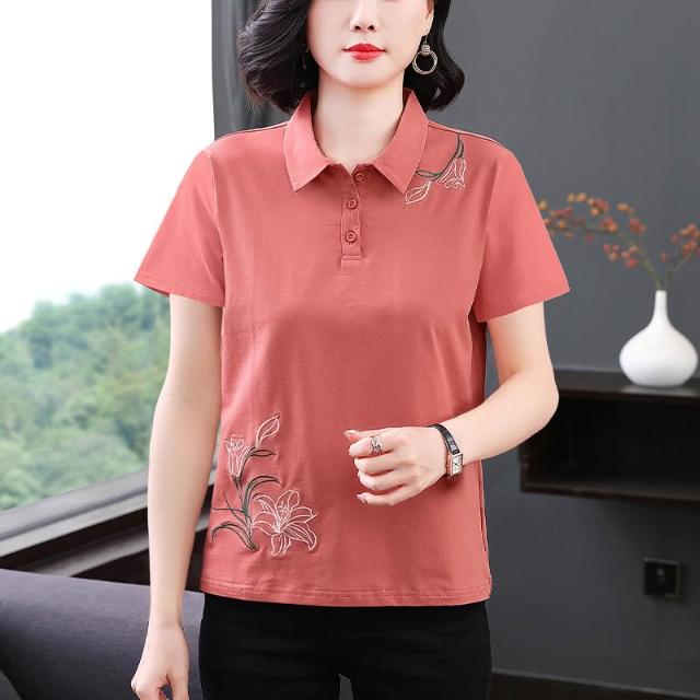 新品 短袖 上衣 媽媽裝2026夏季新款短袖女士翻領刺繡T恤高級感小眾設計寬松上衣 居之雅