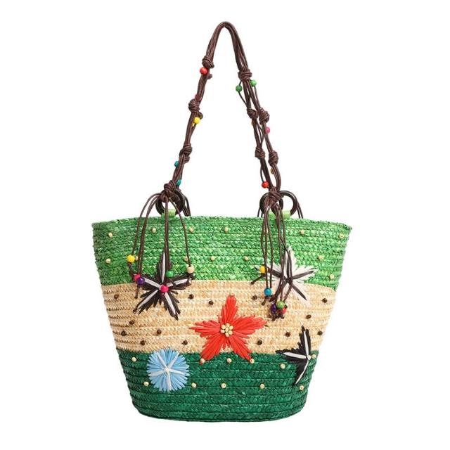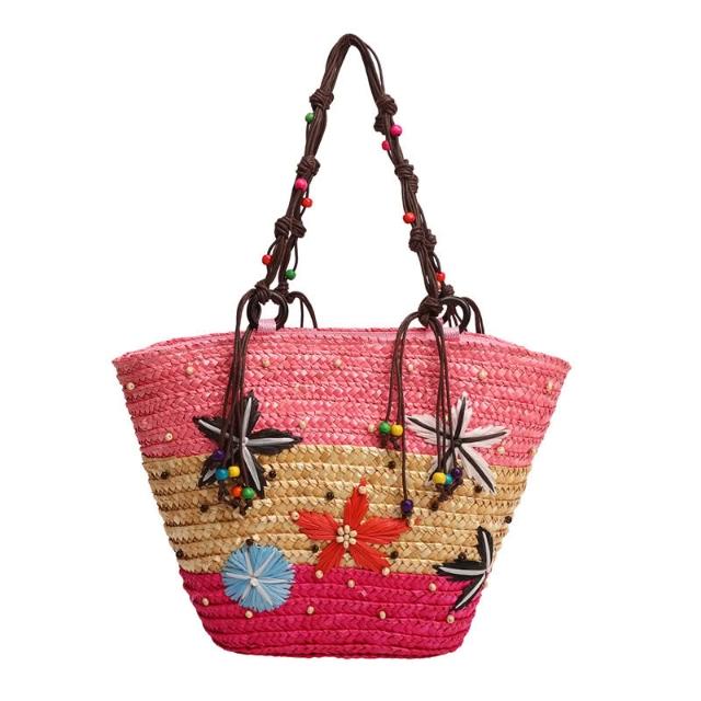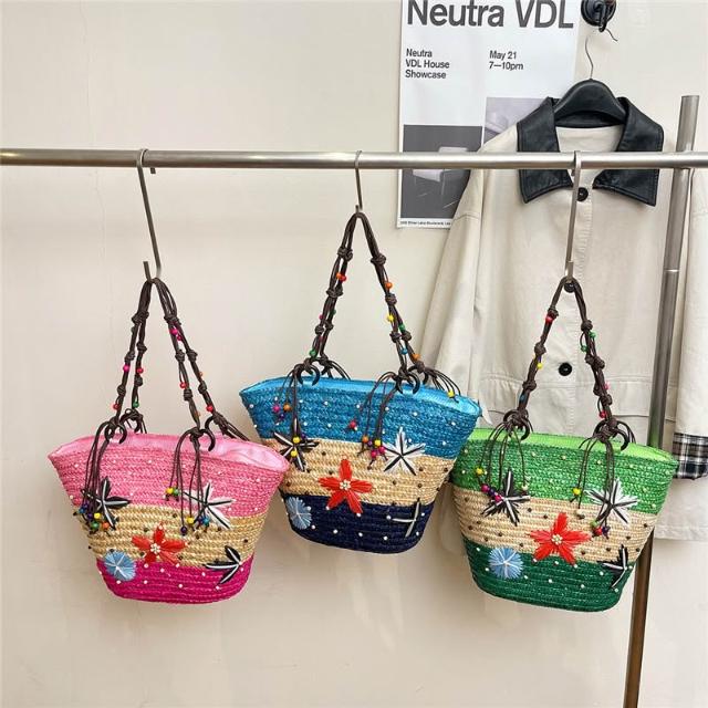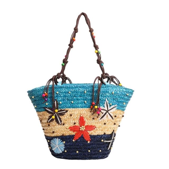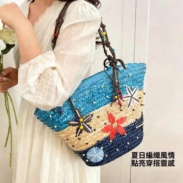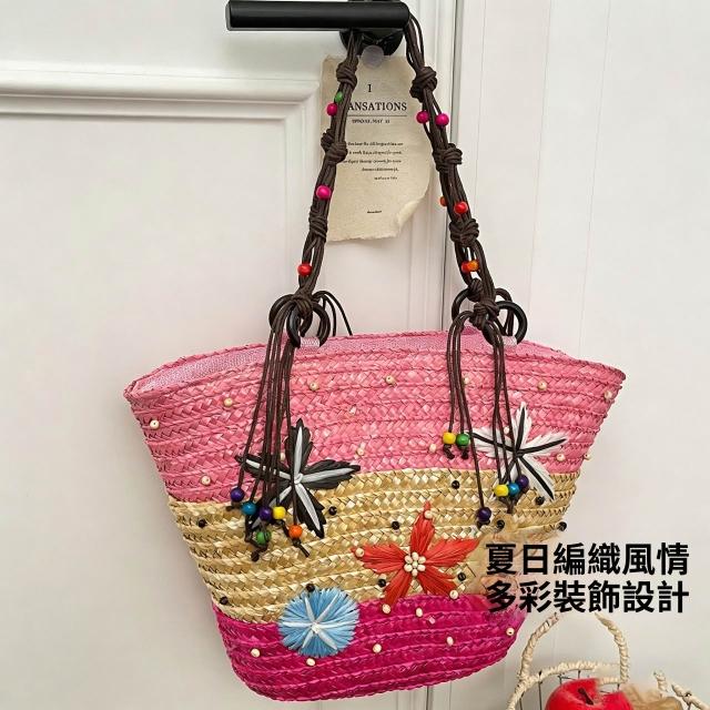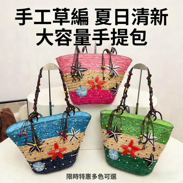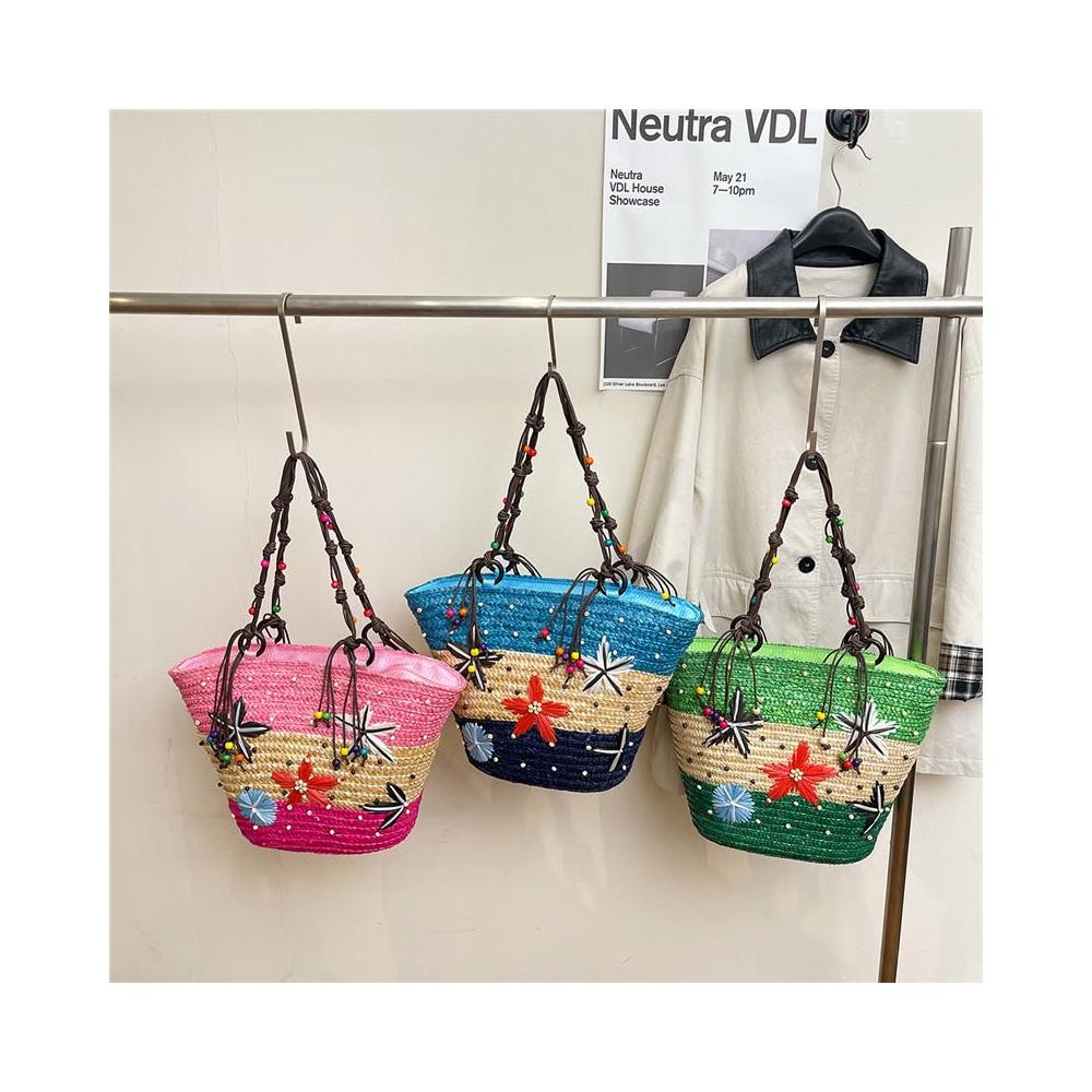 新品 編織包 單肩手提包 夏季草編包女大容量海星裝飾沙灘包 度假旅遊單肩手提包廠家直供 居之雅