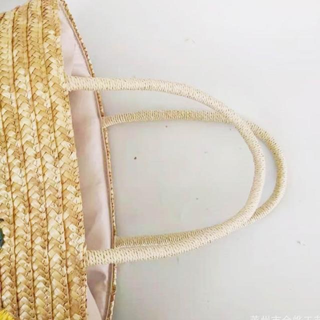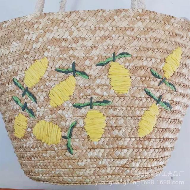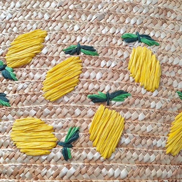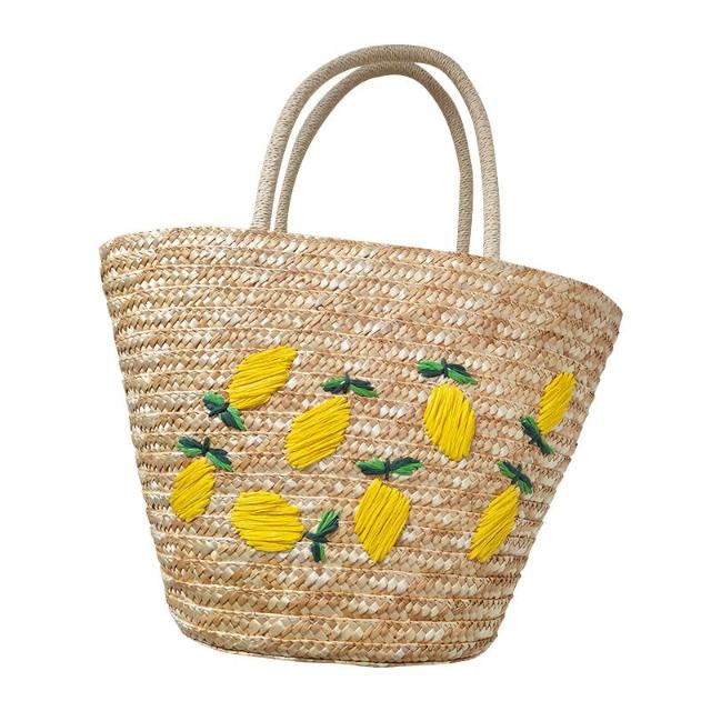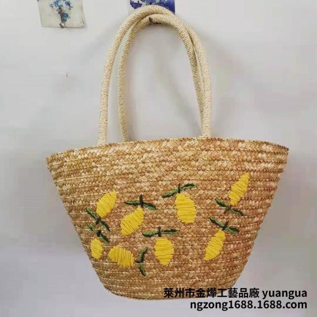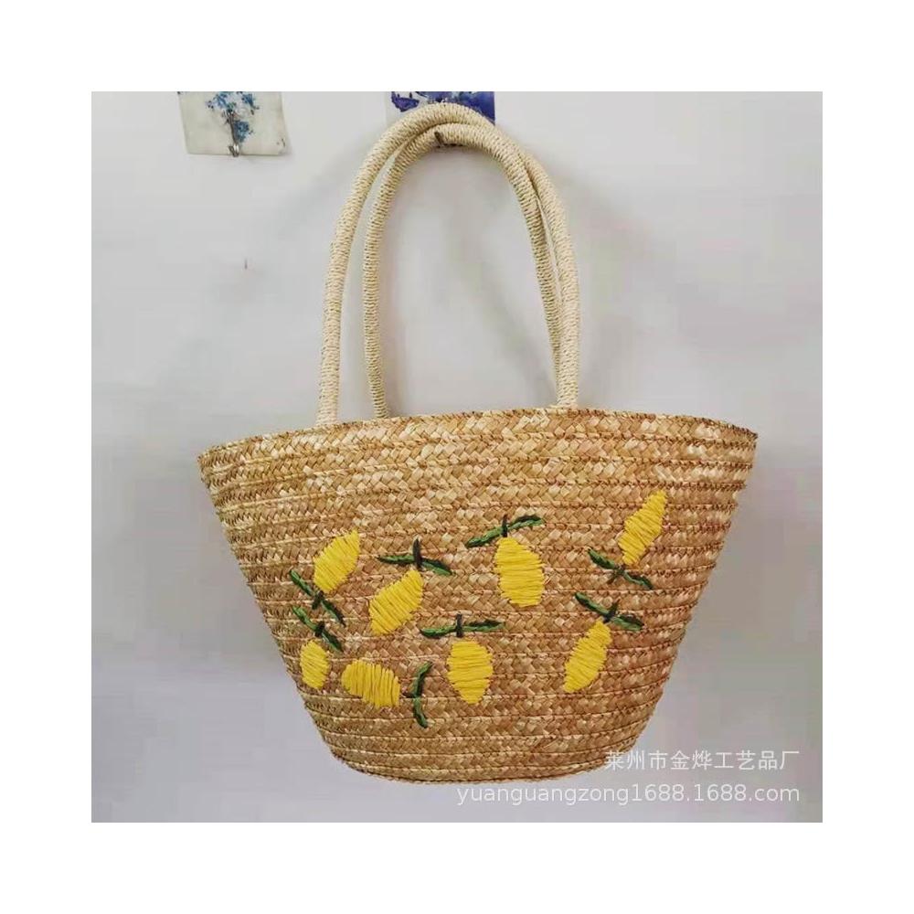 新品 編織包 單肩手提包 麥草繡花編織包 檸檬芒果圖案休閑單肩包 刺繡女包斜挎手提草編包 居之雅