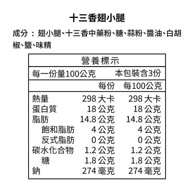 金緗雞-十三香翅小腿(半生鮮)300公克±10%