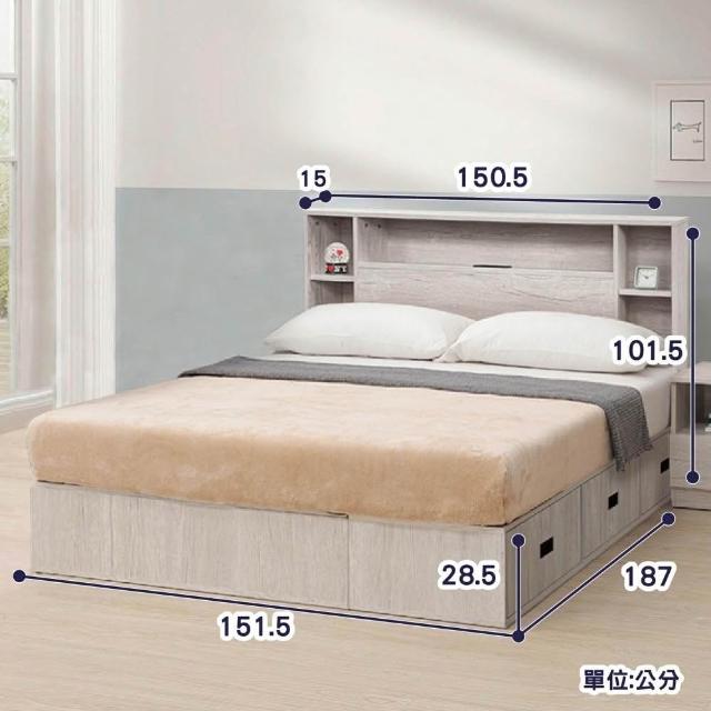 大象傢俱台灣製造|Linda5尺 雙人床頭櫃 雙人床架 抽屜床架 床底收納 收納床架 雙人床組 木心板 免組裝最高3年保固