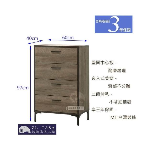 大象傢俱台灣製造|輕工業風 古橡木 60公分 四斗櫃 收納櫃 四抽櫃 斗櫃 四層斗櫃 木心板 免組裝 最高3年保固 台灣製造
