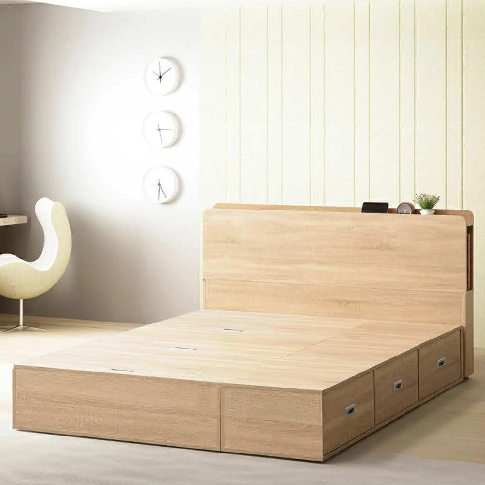 大象傢俱台灣Amanda 圓切木 附插座5尺雙人床 收納床組(不含床墊) 掀床+抽屜 床頭箱 床頭櫃 木心板 免組裝最高3年保固