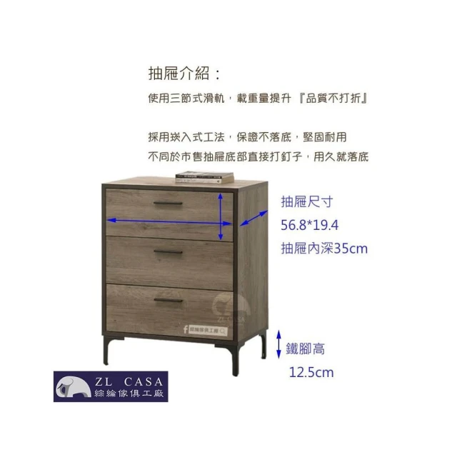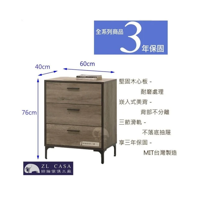 大象傢俱台灣製造|輕工業風 古橡木 60公分 三斗櫃 收納櫃 三抽櫃 斗櫃 三層斗櫃 木心板 免組裝 最高3年保固 台灣製造