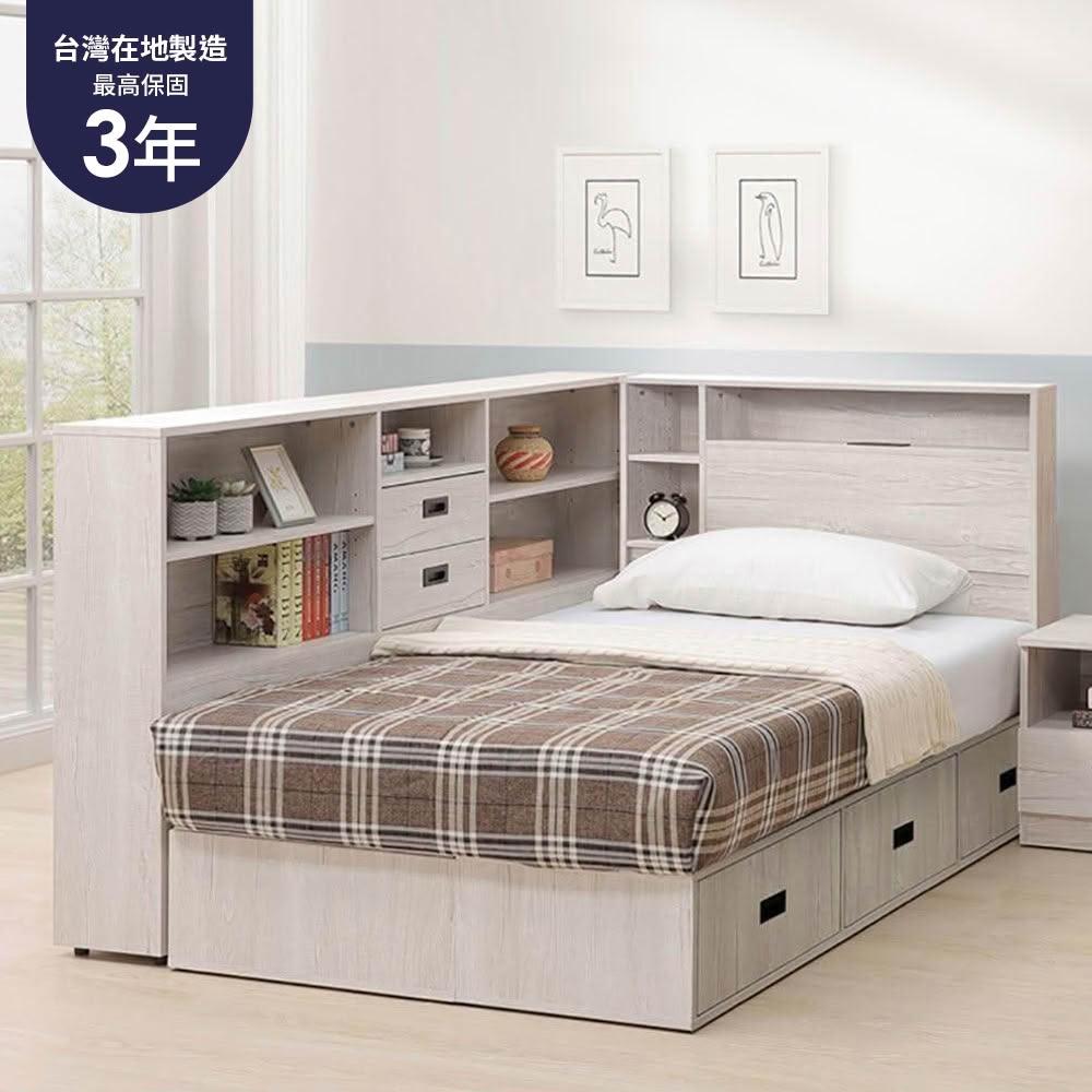 大象傢俱台灣製造|Linda 3.5尺 單人加大床架組3件組 床頭櫃 床邊櫃 床底收納 收納床架 單人床組 木心板最高3年保固
