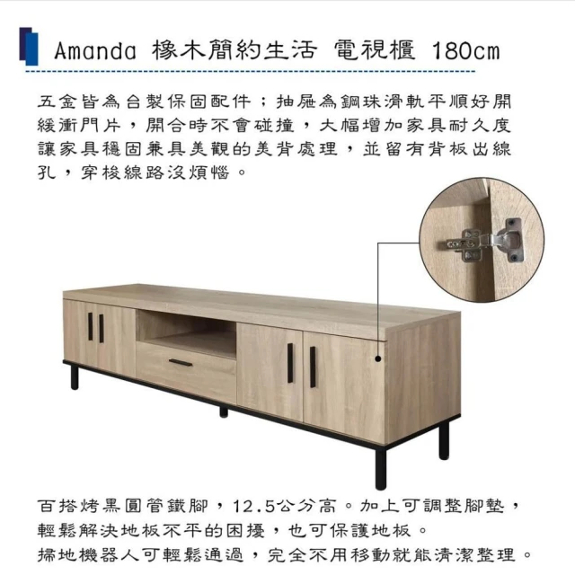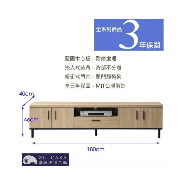 大象傢俱台灣製造|Amanda 圓切木 6尺 180公分 電視櫃 收納電視櫃 橡木簡約 木心板 免組裝 最高3年保固 台灣製造