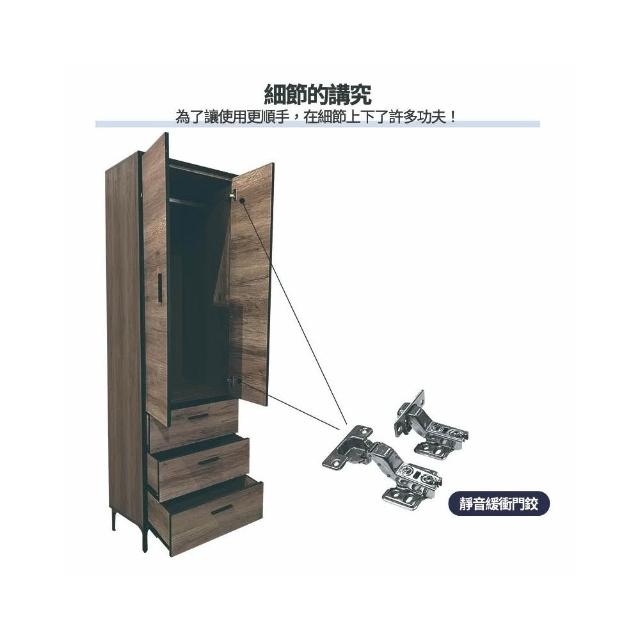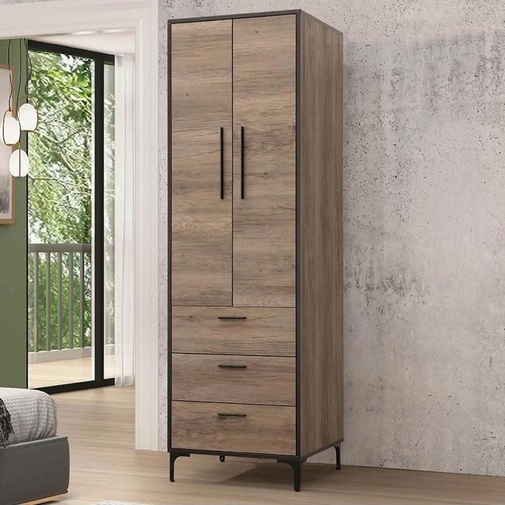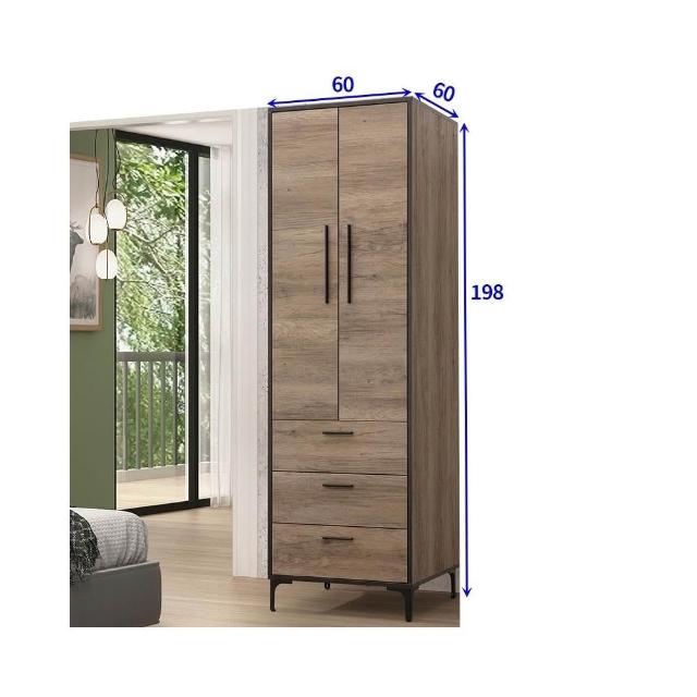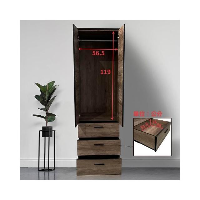 大象傢俱台灣製造|輕工業風 古橡木 60cm 2尺衣櫃 衣櫥櫃 抽屜衣櫃 吊桿衣櫃 木心板 免組裝 最高3年保固 台灣製造