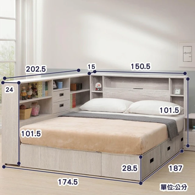 大象傢俱台灣製造|Linda 5尺 雙人收納床組三件組 床底收納箱 床邊櫃 床頭櫃 收納床架 附插座免組裝 最高3年保固 台灣製