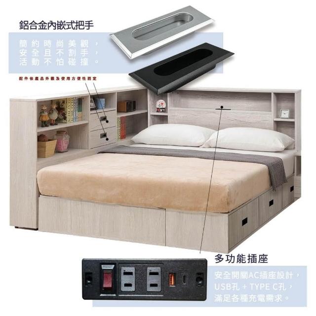大象傢俱台灣製造|Linda 5尺 雙人收納床組三件組 床底收納箱 床邊櫃 床頭櫃 收納床架 附插座免組裝 最高3年保固 台灣製