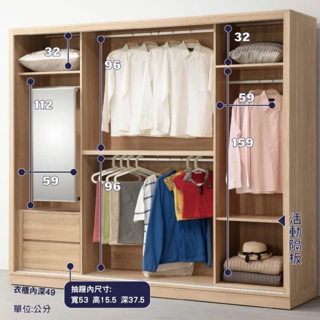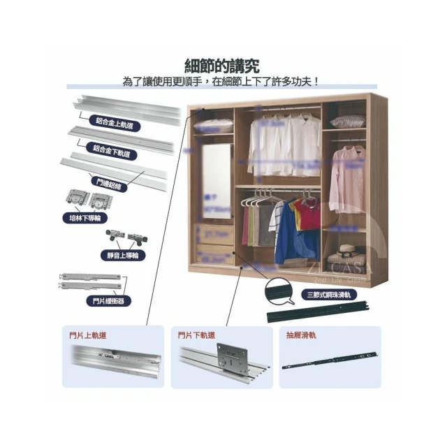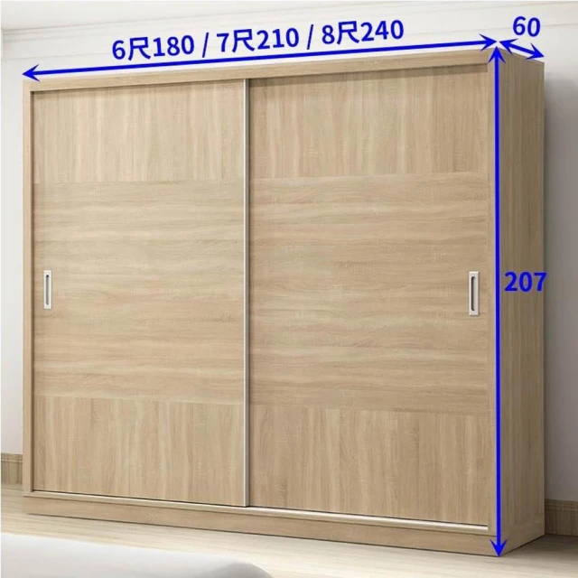 大象傢俱台灣製造|Amanda 8尺/7尺6尺 主臥滑門式緩衝推拉門衣櫃組 單吊+雙吊 鏡子選配 木心板 免組裝 最高3年保固