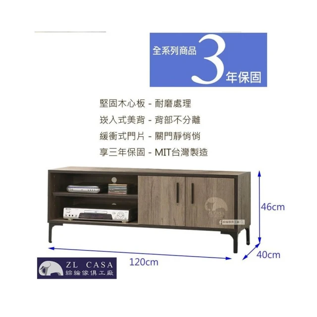 大象傢俱台灣製造|輕工業 古橡木 4尺 120公分 電視櫃 收納電視櫃 橡木簡約 木心板 免組裝 最高3年保固 台灣製造