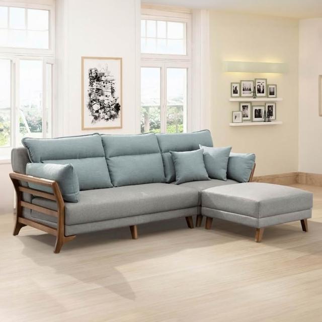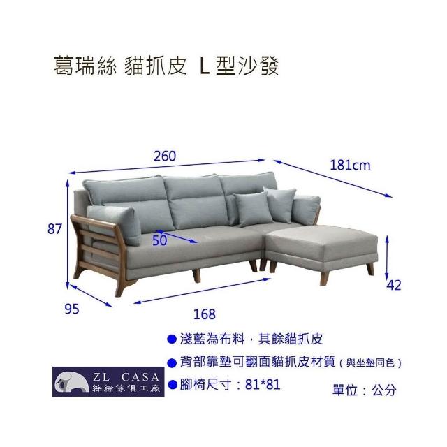 大象傢俱台灣出貨|葛瑞絲貓抓皮L型沙發 三人沙發+腳椅 獨立筒 / 硬式泡棉