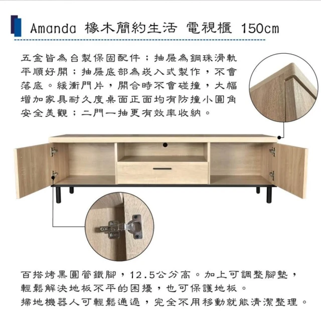 大象傢俱台灣製造|Amanda 圓切木 5尺 150公分 電視櫃 收納電視櫃 橡木簡約 木心板 免組裝 最高3年保固 台灣製造