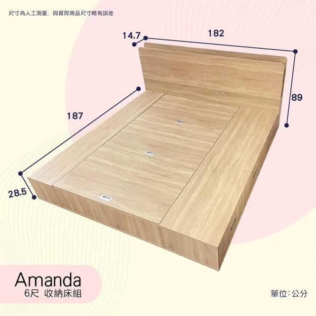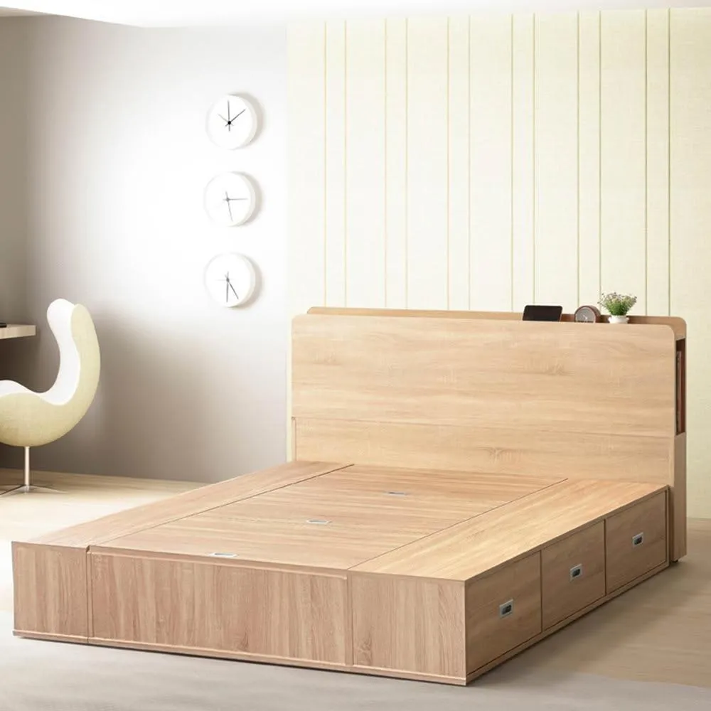 大象傢俱台灣製造|Amanda 附插座6尺雙人加大收納床組 圓切木 木心板 免組裝 最高3年保固 台灣製造