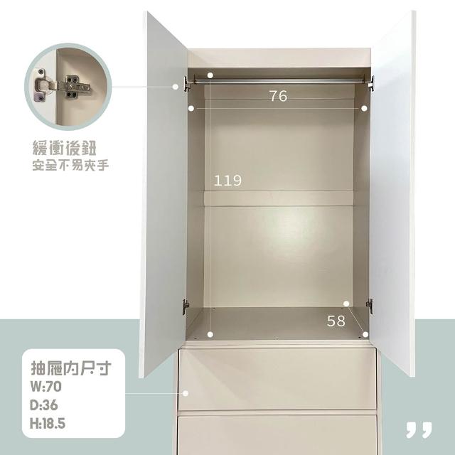 大象傢俱『福利品』台灣製造|Anna 奶茶色 80cm 二門二抽衣櫃 衣櫃 吊衣櫃 收納櫃 抽屜衣櫃 木心板 免組裝 最高3年保固