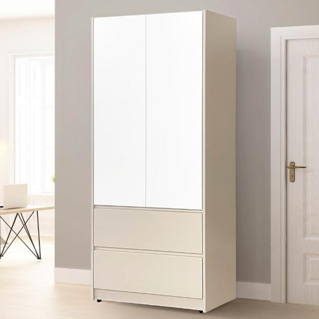 大象傢俱『福利品』台灣製造|Anna 奶茶色 80cm 二門二抽衣櫃 衣櫃 吊衣櫃 收納櫃 抽屜衣櫃 木心板 免組裝 最高3年保固
